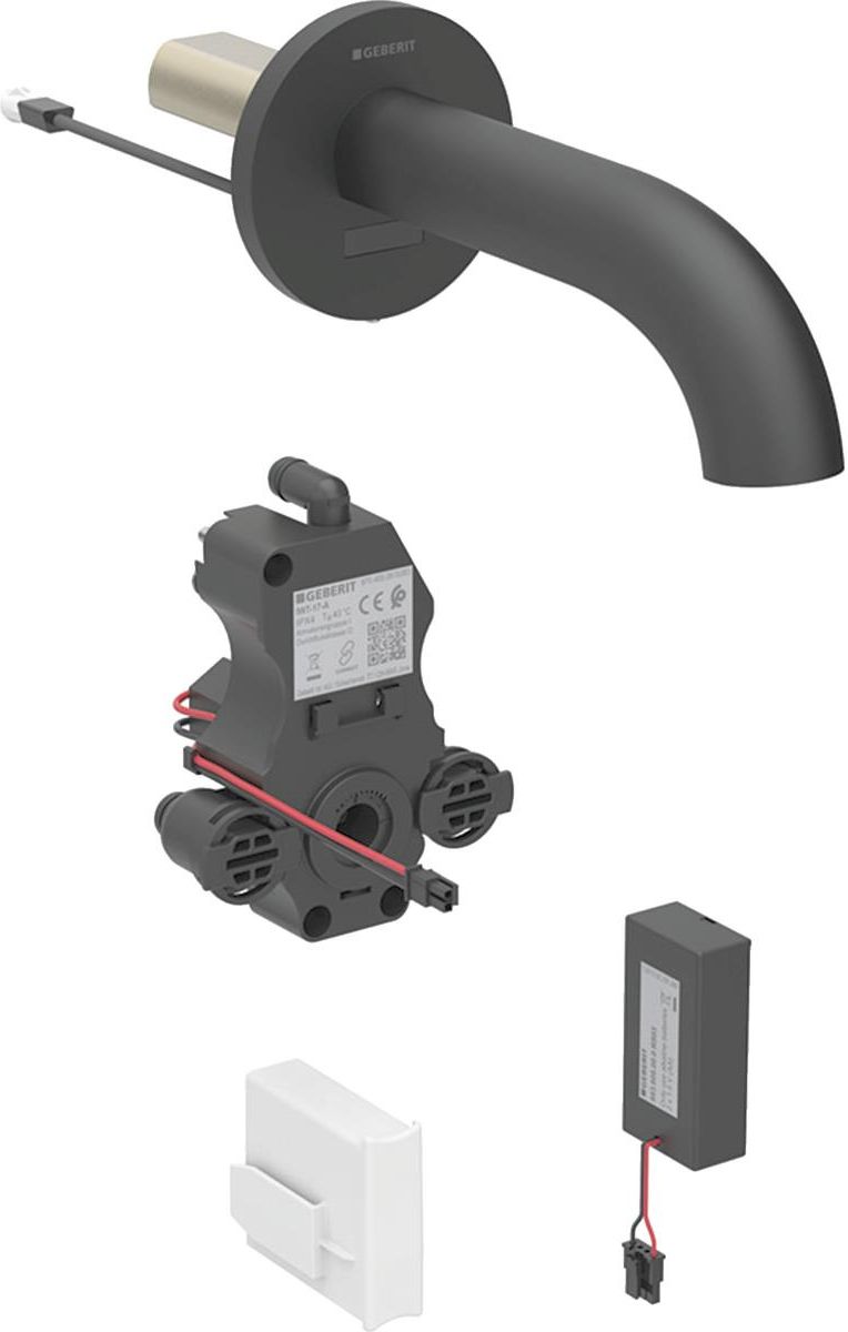 Poziom hałasu Grupa I armatury, zgodnie z DIN 4109 Automatyczne uruchamianie spłukiwania Wykrywanie za pomocą podczerwieni Czujnik podczerwieni z funkcją samoregulacji Wandalooporny Ograniczanie strumienia za pomocą regulatora strumienia Regulacja temperatury poprzez mieszacz (tylko w przypadku modelu z mieszaczem lub mieszaczem termostatycznym) Brak możliwości regulacji samej ciepłej lub samej zimnej wody (tylko w przypadku modelu z mieszaczem lub mieszaczem termostatycznym) Termostat wg EN 1111 (tylko w przypadku modeli z mieszaczem termostatycznym) Ochrona przed poparzeniem dzięki ograniczeniu temperatury wody do 42°C (tylko w przypadku modeli z mieszaczem termostatycznym) Możliwość termicznej dezynfekcji wg DVGW W 551 Zasilanie bateryjne Bateria wystarczająca na ok. 200'000 uruchomień Ostrzeżenie o słabej baterii Możliwość regulacji trybu oszczędzania energii Oszczędność wody dzięki precyzyjnej dwupromieniowej technice wykrywania użytkownika Możliwość zmiany ustawień oraz odczytu statystyk za pomocą pilota serwisowego Geberit Service-Handy Ustawienia urządzenia i obsługa za pomocą urządzenia mobilnego poprzez wbudowany interfejs Bluetooth® (od daty produkcji: kwiecień 2023) Kompatybilny z Geberit Control App (od daty produkcji: kwiecień 2023) Możliwość regulacji programu z funkcją oszczędzającą wodę Możliwość regulacji programu spłukiwania okresowego Możliwość indywidualnej regulacji czasu trwania spłukiwania Możliwość wyłączenia uruchamiania spłukiwania Ze zintegrowanym zaworem zwrotnym Jednostka funkcjonalna z wbudowanym filtrem koszyczkowym Do zastosowania w obiektach publicznych i pół-publicznych Do montażu w elementach montażowych Geberit do umywalki, elektroniczna bateria ścienna z podtynkową skrzynką funkcyjną Do podłączania zimnej i ciepłej wody (tylko w przypadku modelu z mieszaczem lub mieszaczem termostatycznym) Do podłączania zimnej lub zmieszanej wody (tylko w modelach bez mieszacza) Do zastosowania również z umywalkami ze stali nierdzewnej Model z mieszaczem lub mieszaczem termostatycznym, nie nadaje się do stosowania z podgrzewaczem, patrz arkusz danych technicznych „Baterie umywalkowe z podgrzewaczami” Do pokrycia o grubości 10–50 mm