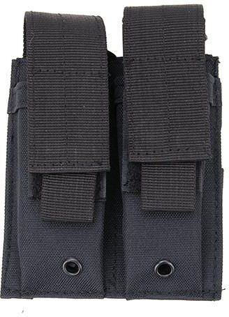 Podwójna ładownica pistoletowa Podwójna ładownica kompatybilna z systemem MOLLE/PALS, mieszcząca 2 standardowe magazynki pistoletowe. Zamykana na klapę z rzepem.