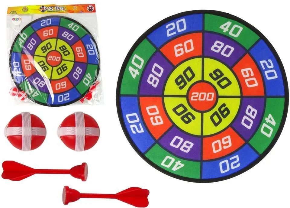 Gra Zręcznościowa Dart Tarcza + Rzutki i Piłeczki Na Rzep Tarcza z rzutkami i piłeczkami na rzep to znakomita propozycja ciekawej zabawy zarówno w domu jak i na zewnątrz. Tarcza jest lekka, nie zajmuje wiele miejsca i można ją zawiesić gdzie tylko zechcemy ! Tarcza o średnicy 36 cm wykonana jest z miękkiego materiału, usztywniona od spodu. Do zestawu dołączono rzutki oraz piłeczki na rzep. Można grać na wiele sposobów zarówno samemu jak i w parze. Gra znakomicie ćwiczy celność, sprawność manualną ,wyczucie i uwagę. Doskonała dla dzieci już od 3 roku życia. Na tarczy znajdziemy ponumerowane pola. Wymiary tarczy: 36 cm x 36 cm Informacje o produkcie Długość towaru w centymetrach 36 Wysokość towaru w centymetrach 36 Szerokość towaru w centymetrach 3 Ostrzeżenie! Nieodpowiednie dla dzieci w wieku poniżej 3 lat Płeć unisex Wiek dziecka 3+ Waga gabarytowa w gramach 648