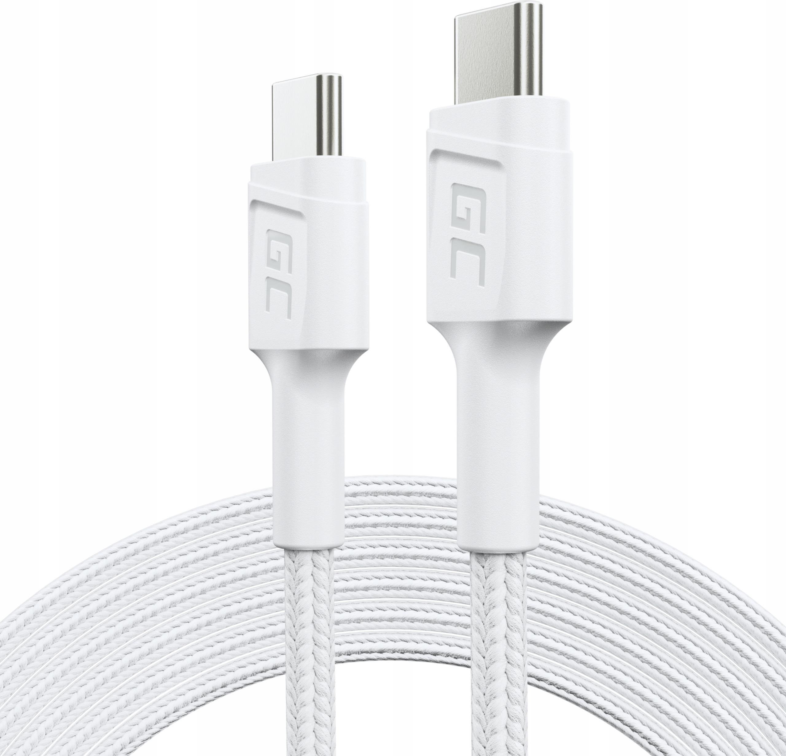 Biały Kabel Green Cell GC PowerStream USB-C - USB-C 200cm z obsługą szybkiego ładowania Power Delivery 60W oraz Quick Charge 3.0 Długość 200cm | Szybkie ładowanie | Niezwykła trwałość Kabel biały GC PowerStream USB-C - USB-C o długości 200cm z obsługą szybkiego ładowania w standardzie Power …