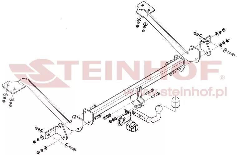Hak Odkręcany STEINHOF C-015 Dane techniczne Homologacja: e20 Rodzaj kuli: Odkręcana Parametr "D" [kN]: 8,7 Max. uciąg [kg]: 1600 Max. nacisk pionowy [kg]: 70 Hak Odkręcany STEINHOF C-015 pasuje do poniższych aut:Kliknij tutaj aby rozwinąć listę(kliknij markę aby sprawdzić kompatybilne modele) CITROEN CITROEN Berlingo II (dł. całkowita 4628 mm) [ 2008-2011 ] Wymaga zdjęcia / podcięcia zderzaka: NIE / NIE CITROEN Berlingo II (dł. całkowita 4628 mm) [ 2011-2018 ] Wymaga zdjęcia / podcięcia zderzaka: NIE / NIE PEUGEOT PEUGEOT Partner II Furgon / Tepee dł. całkowita 4628 mm [ 2008-2018 ] Wymaga zdjęcia / podcięcia zderzaka: NIE / NIE PEUGEOT Partner II Furgon / Tepee dł. całkowita 4628 mm [ 2011-2018 ] Wymaga zdjęcia / podcięcia zderzaka: NIE / NIE Hak odkręcany STEINHOF to praktyczne i trwałe rozwiązanie dla kierowców, którzy cenią sobie niezawodność i prostotę użytkowania. Jego solidna budowa gwarantuje bezawaryjną pracę, a jednocześnie zapewnia komfort i pewność podczas codziennego użytkowania. Zawsze gotowy do działania – dokładnie wtedy, gdy jest potrzebny. Model odkręcany nie zawiera żadnych mechanizmów ani ruchomych części, dzięki czemu jest całkowicie bezobsługowy i odporny na uszkodzenia. Każdy hak STEINHOF jest projektowany z myślą o konkretnym modelu pojazdu, co zapewnia idealne dopasowanie bez konieczności cięcia lub spawania elementów podwozia. To rozwiązanie doskonale sprawdza się w wielu sytuacjach – od holowania przyczep, przez transport rowerów, aż po montaż dodatkowych akcesoriów. Gdy hak nie jest potrzebny, można go w prosty sposób zdemontować, odkręcając kilka śrub. Zwykle jednak może pozostać zamocowany na stałe, nie przeszkadzając w codziennym użytkowaniu auta. Wszystkie haki holownicze STEINHOF są zabezpieczane trwałą powłoką proszkową, która chroni stal przed korozją i działaniem czynników atmosferycznych. Wykorzystanie wysokiej jakości materiałów gwarantuje bezpieczeństwo, trwałość i pełną niezawodność w każdych warunkach eksploatacji – a przy tym w bardzo atrakcyjnej cenie. Dodatkowo, produkty STEINHOF objęte są 2-letnią gwarancją producenta, co potwierdza ich jakość i dbałość o użytkownika. Co zawiera zestaw Belkę haka idealnie dopasowaną do Twojego auta Kulę odkręcaną Zestaw montażowy (wsporniki, śruby, podkładki, etc.) Osłonkę kuli (kapturek) Homologację - tabliczka znamionowa na belce - wymagana do rejestracji! Podstawka pod gniazdo elektryczne Instrukcja montażu Hak standardowo nie zawiera w zestawie wiązki elektrycznej. Odpowiednio dopasowane zestawy elektryczne znajdziesz poniżej. Producent lub osoba odpowiedzialna GRUPA STEINHOF SPÓŁKA Z OGRANICZONĄ ODPOWIEDZIALNOŚCIĄ Przemysłowa 27A 33-100 Tarnów sekretariat@steinhof.plOstrzeżenia dotyczące bezpieczeństwa: Montaż wyłącznie przez wykwalifikowany warsztat. Nie przekraczać maksymalnego uciągu i nacisku na kulę określonych przez producenta. Przed każdą jazdą sprawdzić mocowanie i stan haka. Nie używać haka z oznakami uszkodzenia lub luzami. Nie modyfikować elementów haka ani mocowań. Regularnie kontrolować momenty dokręcenia i stan połączeń. Używać wyłącznie do holowania pojazdów zgodnych z homologacją.