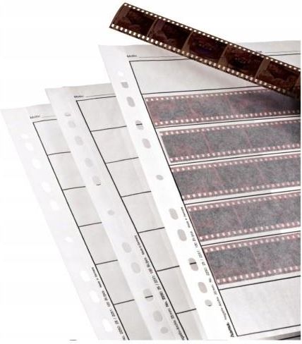 Koszulki na negatywy 24x36mm pergamin Hama do archiwizacji 100 sztuk Pergaminowe koszulki do segregatorów fotograficznych - dużo mniej przezroczyste niż acetatowe - na mały obrazek, typ 135. Koszulki Hama bardzo dobrze sprawdzają się w archiwizacji, "oddychają" i nie elektryzują się. Folia archiwizacyjna na negatyw małobrazkowy jest na 7 pasków negatywów 24x36 mm. Wielkość arkusza to 260x310mm. W koszulkach można oceniać negatywy oglądając je pod światło lub - lepiej i wygodniej - korzystając z podświetlarki. Opakowanie zawiera 100 sztuk. Koszulki nadają się tylko do przechowywania w segregatorach fotograficznych. Ze standardowych segregatorów - biurowych - wystają, są do nich za szerokie. W segregatorach biurowych można przechowywać koszulki węższe, specjalnie robione pod tym kątem.