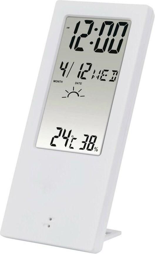 Termometr i higrometr Hama TH-140 z prognozą pogody białe Termometr/higrometr Hama TH-140 to niezawodne urządzenie, które pozwoli Ci na szybkie uzyskanie informacji o warunkach atmosferycznych w Twoim otoczeniu. Dzięki innowacyjnym funkcjom, przygotowanie się do wyjścia będzie prostsze, ponieważ Hama TH-140 precyzyjnie przedstawia prognozę pogody za pomocą zrozumiałych symboli: słonecznie, pochmurnie, deszczowo. Oprócz prognozowania pogody, urządzenie tego modelu dostarcza również danych na temat wilgotności powietrza wewnątrz pomieszczeń, co przyczynia się do dbania o komfortowe warunki życia. Z Hama TH-140, zawsze będziesz wiedział, jak się ubrać przed wyjściem lub jak dostosować warunki w Twoim domu, aby zapewnić sobie i bliskim wygodę. Prognozy pogody: symboliczne przedstawienie warunków atmosferycznych Pomiar temperatury: zakres od -40°C do +50°C Pomiar wilgotności: zakres od 20% do 90% Wyświetlacz: data, dzień tygodnia, godzina Funkcje dodatkowe: alarm z funkcją drzemki, zegar Możliwość przełączania: pomiędzy °C i °F Przechowywanie danych: minimalne i maksymalne wartości temperatury oraz wilgotności Format wyświetlania godziny: 12 i 24 h Wymiary: 6.5 x 1.2 x 14.5 cm Waga: 113 gram Hama TH-140 to doskonały wybór dla każdego, kto pragnie mieć pod kontrolą jednocześnie zarówno temperaturę, jak i wilgotność powietrza. Bezprzewodowy czujnik oraz praktyczna składana podstawa sprawiają, że jest to produkt wygodny i łatwy w użytkowaniu. Dzięki swojej eleganckiej, białej obudowie, idealnie wpasuje się w wystrój każdego wnętrza. Pomiar Temperatury: -40°C do +50°C Pomiar Wilgotności: 20% do 90% Wyświetlacz: Data, Dzień, Godzina Alarm: Z Funkcją Drzemki Format Godziny: 12 i 24 h Wymiary: 6.5 x 1.2 x 14.5 cm Waga: 113 Gram Bezprzewodowy Czujnik: Tak Podstawka Składana: Tak Przechowywanie Danych: Tak Symboliczne Prognozy: Tak Elegancka Obudowa: Biała Producent: Hama SKU: 186366 Produkt nowy i oryginalny - Zapewniamy, że oferowany przez nas produkt jest całkowicie nowy i oryginalny. Kompletny zestaw - Produkt dostarczany jest w oryginalnym opakowaniu, z pełnym zestawem akcesoriów, dokładnie tak jak dostarcza go producent. Autentyczność - Nasz produkt pochodzi z oficjalnych kanałów dystrybucji w Unii Europejskiej, co gwarantuje jego autentyczność oraz bezpieczeństwo użytkowania. Wsparcie producenta - Produkt objęty jest oficjalnym wsparciem producenta, zapewniającym pomoc i serwis na wysokim poziomie.