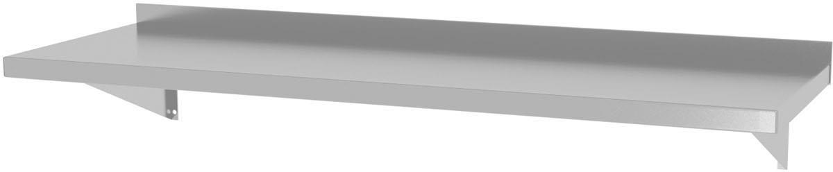 Opis: Wykonana ze stali nierdzewnej AISI 430 Konstrukcja spawana gwarantująca wysoką wytrzymałość i stabilność Orientacyjne, dopuszczalne obciążenie półki wynosi 25 kg/m² Rant przyścienny 30 mm zabezpiecza towar przed spadnięciem W zestawie 2 konsole do powieszenia na ścianie Parametry techniczne: Wymiary: 1400x300x250 mm