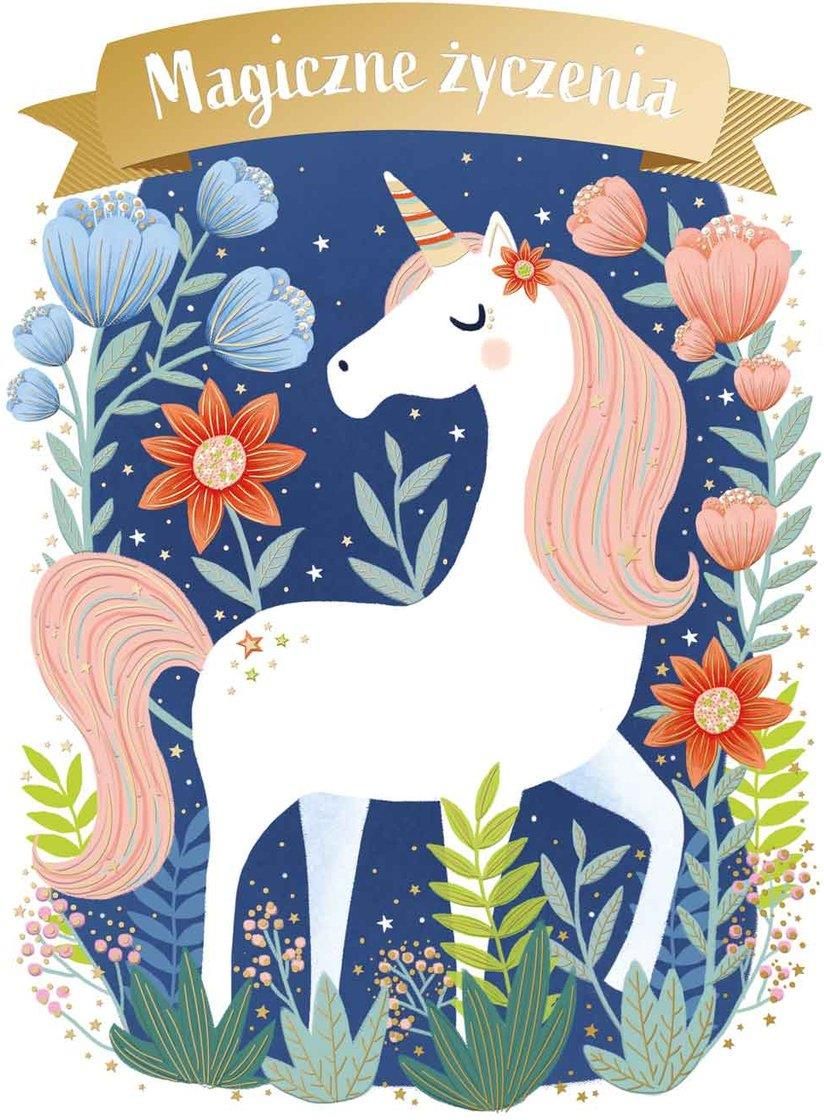 Wybierasz się na urodziny w bajkowym klimacie? A może zamierzasz złożyć jubilatce życzenia w formie listu? Śliczna kartka okolicznościowa zdecydowanie Ci się przyda! Na białej kartce widać uroczego jednorożca z różową grzywą na tle kolorowych kwiatów oraz napis "Magiczne życzenia".&#9989 Wewnątrz …