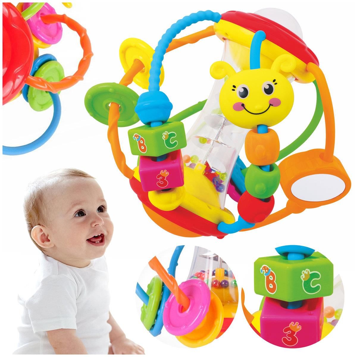 Duża kolorowa Kula grzechotka sensoryczna edukacyjna piłka Hola Kolorowa kula grzechotka marki Hola Interaktywna zręcznościowa kula z grzechotką dla najmłodszych. Rekomendowana dla dzieci już od 3 miesiaca życia. Kula przeznaczona jest dla najmniejszych pociech, które poznają co dopiero otaczający go świat. Kula wyposażona jest w wiele funkcji, które wpłyną pozytywnie na zdolności motoryczne malucha, a kolory i kształty rozbudzą ciekawość dziecka. Zabawka wykonana jest z wysokiej jakości materiałów, starannie wykończona, dzięki czemu zabawa jest całkowicie bezpieczna. Dzięki jej niezwykłej konstrukcji jest idealana do rozwijania zwysłu dotyku, słuchu i wzroku. ✅ Posiada aż 6 gietkich ramion w trzech kolorach. Każde z ramion posiada coś ciekawego m.in. uśmiechniętą buzię gąsieniczki z koralikami, bezpieczne lusterko, guziczki do przeplatania. ✅ Dodatkowo przez śodek kuli jest umiejscowiona spirala z kulaczkami - obróć kulę a zobaczysz jak koraliki się przesypują i spirala sie obraca ✅ To jeszcze nie koniec! Na szczycie jest obrotowa kulka w której zmienia się obrazek a na spodzie piszczałka. Wspaniała zabawka w fantastycznie żywych kolorach! Twój maluszek będzie zachwycony. SPECYFIKACJA SKU: SN786 wiek: 3m+ wielkość zabawki: 17x17 cm Wymiary opakowania:18 x 17 x 19 cm