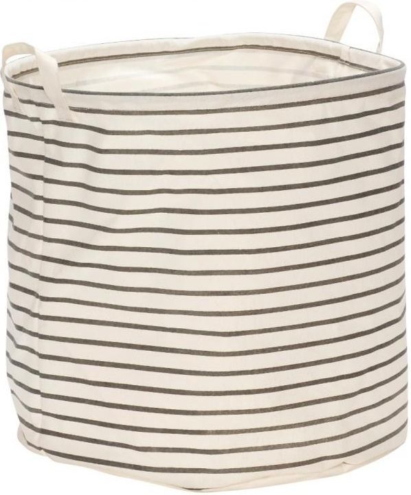 Okrągły kosz w paski z dwoma uchwytami. Wymiary: 40 x 40 cm.