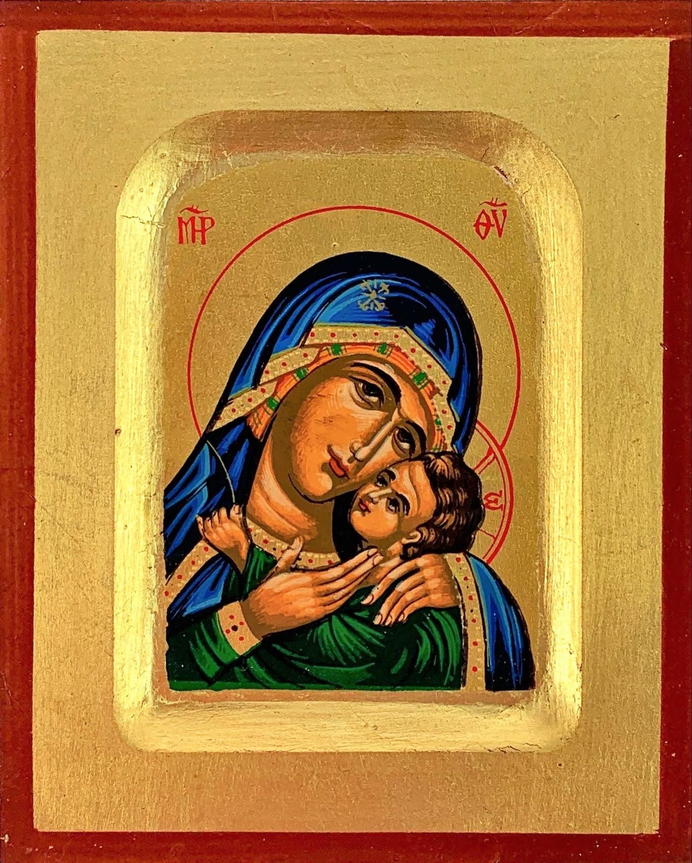 Ta ręcznie wykonana ikona jest kopią oryginalnej ikony bizantyjskiej. Wykonana została na płótnie lnianym wklejonym w drewno. Tło ikony stanowi sproszkowane złoto. Ikona posiada stosowny certyfikat.