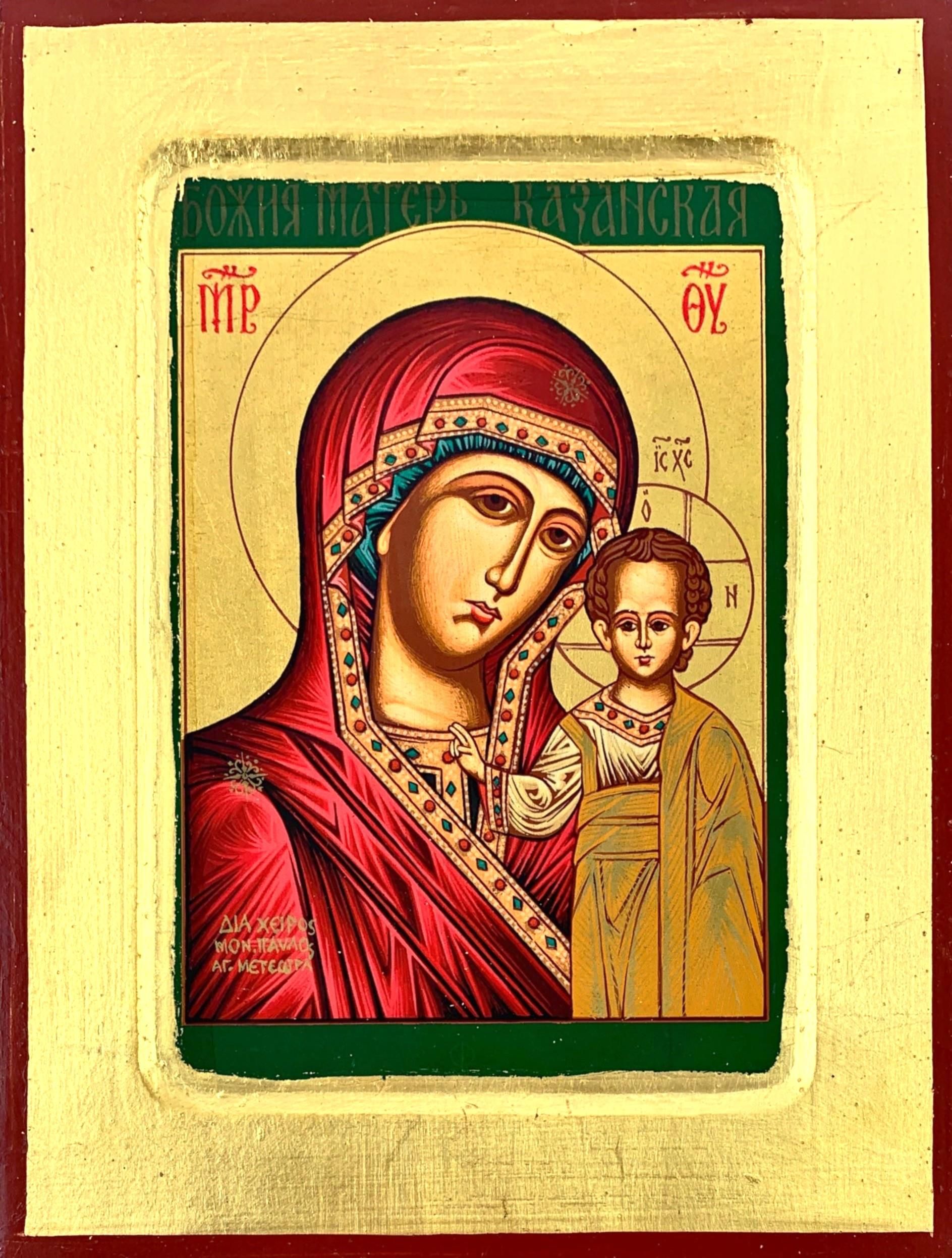 Ta ręcznie wykonana ikona jest kopią oryginalnej ikony bizantyjskiej. Wykonana została na płótnie lnianym wklejonym w drewno. Tło ikony stanowi sproszkowane złoto. Ikona posiada stosowny certyfikat.