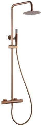 Kolumna prysznicowa termostatyczna szczotkowana miedź Kolekcja Line wyróżnia się prostotą i doskonałą formą, które są efektem zamiłowania do doskonałości. Projekt opiera się na kształcie koła, który stanowił inspirację i fundament dla całego przedsięwzięcia. Minimalistyczny, ponadczasowy wzór o doskonałej precyzji zapewnia szerokie możliwości aranżacji. 5-cio letnia gwarancja IMEX obejmuje wszystkie elementy baterii. Szczotkowana miedź to metaliczne wykończenie o miedzianej barwie i satynowej, szczotkowanej powierzchni, które dodaje przemysłowego charakteru. Powłoka została wykonana przy użyciu zaawansowanej technologii PVD, gwarantując nie tylko doskonałą trwałość, ale także wyjątkowy efekt estetyczny. Specyfikacja: - Drążek prysznicowy ze stali nierdzewnej. S.304, rozkładany 95-132 cm.- Opryskiwacz ze stali nierdzewnej. S.304 Ø20cm.- Bardzo płaska.- Powłoka PVD zapobiegająca osadzaniu się kamienia.- Uchwyt prysznicowy z regulacją wysokości.- Okrągły uchwyt prysznicowy 1-pozycyjny.- Bateria termostatyczna z mosiądzu.- Średni przepływ 12 l/min.- Zintegrowany dystrybutor.- Wąż zbrojony PVC 1,5 m.- Wkład ceramiczny 35 mm.- Wkład termostatyczny TURN CLEAN SYSTEM. TURN CLEAN SYSTEM - Technologia najnowszej generacji.- System zabezpieczający przed poparzeniem.- Optymalna praca w warunkach niskiego ciśnienia.- Łatwe, szybkie i skuteczne czyszczenie wkładu termostatycznego. Dlaczego produkty IMEX? Marka IMEX to wiodący producent baterii łazienkowych o najwyższym standardzie. Cechuje się pasją do doskonałości i nieustanny rozwój sprawiły, że zdobyliśmy uznanie w świecie aranżacji łazienek, a teraz jesteśmy gotowi, by podzielić się tym z Tobą. Głównym filarem, który napędza nasz ciągły rozwój to posiadanie najlepszego na rynku stosunku ceny do jakości naszych produktów. Jakie wartości są kluczowe w IMEX? Wierzymy, że jakość jest fundamentem sukcesu. Nasze baterie łazienkowe to prawdziwe dzieła nowoczesnego designu. Wykonane zostały z najwyższej jakości materiałów, takich jak mosiądz czy stal s.304 i s.316, gwarantując trwałość i niezwykłą estetykę. Produkty nie tylko spełniają, ale również przewyższają najbardziej wyrafinowane oczekiwania. Klient posiada gwarancję trwałości. Baterie posiadają 5-letnią gwarancję, co świadczy o naszym przekonaniu co do solidności i jakości produktów. Wyroby spełniają najwyższe standardy jakości, które zostały potwierdzone certyfikatami ACS i PUUV. Troska o środowisko naturalne jest dla nas równie ważna jak jakość produktów. Baterie prysznicowe są wyposażone w zaawansowane technologie pozwalające na oszczędność wody. To nie tylko korzystne dla planety, ale również dla Twojego komfortu i portfela. Satysfakcja klienta jest dla nas najważniejsza. IMEX to marka dostarczająca produkty, które mają na celu uczynić Twoją łazienkę miejscem luksusu i elegancji. Jesteśmy, by spełnić Twoje marzenia o doskonałej łazience. Czas na zakupy! Wybierając IMEX, wybierasz najlepsze. Odkryj nasz świat elegancji i jakości!