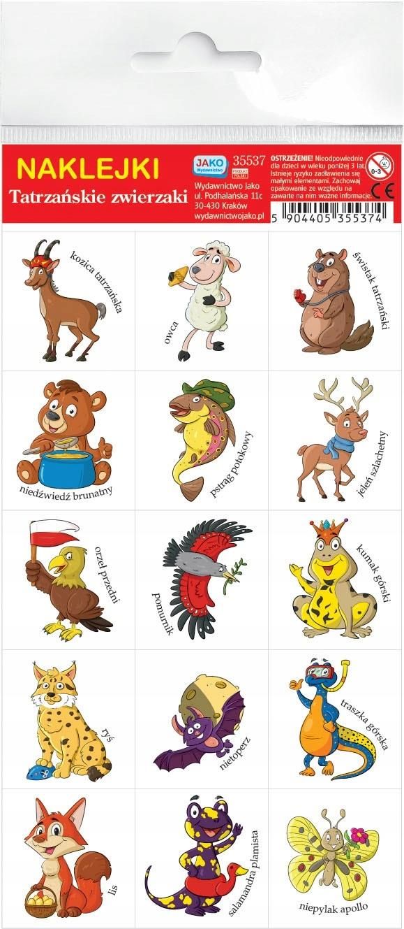 Naklejki Tatrzańskie zwierzaki JAKO __________________________________________________________________ Zestaw 15 naklejek samoprzylepnych z tatrzańskimi zwierzakami idealnie nadaje się do wykorzystania przy wszelkich pracach kreatywnych. Naklejkami można ozdobić kartki okolicznościowe, prezenty, …