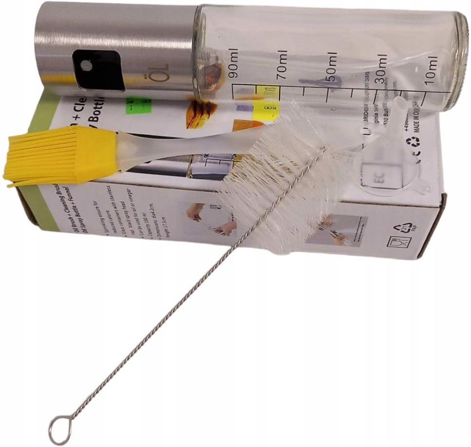 Spryskiwacz spray do oleju oliwy octu 100ml Towar powystawowy, outletowy, stoki magazynowe. Urządzenia mogą posiadać opakowania zastępcze lub oryginalne. Spryskiwacz do oliwy z oliwek to wszechstronne narzędzie kuchenne, które oferuje wiele funkcji w jednym. Obejmuje butelkę do wielokrotnego napełniania, pędzel do pieczenia, szczoteczkę do butelek i lejek do oleju. Praktyczność i wygoda: Spryskiwacz jest wygodny w użyciu i umożliwia kontrolowanie ilości oliwy, którą chcesz dodać do potraw. Możesz używać go do przygotowywania sałatek, pieczenia, smażenia, grillowania i innych potraw, w których chcesz dodać delikatny i równomierny płaszcz oliwy. Wielokrotne napełnianie: Butelka do wielokrotnego napełniania pozwala na łatwe uzupełnianie oliwy, eliminując konieczność częstego kupowania nowych butelek. Jest to ekonomiczne i przyjazne dla środowiska rozwiązanie. Dodatkowe narzędzia: W zestawie znajduje się również pędzel do pieczenia, który umożliwia równomierne rozprowadzanie oliwy na potrawach podczas pieczenia. Szczotka do butelek pomaga w czyszczeniu i konserwacji spryskiwacza, a lejek ułatwia wlewanie oliwy do butelki. Ten spryskiwacz do oliwy z oliwek jest praktycznym narzędziem kuchennym, które ułatwia kontrolowanie ilości i równomierne rozprowadzanie oliwy na potrawach. Jest to wygodne rozwiązanie dla osób, które dbają o zdrowe gotowanie i chcą mieć pełną kontrolę nad dodawaniem oliwy do potraw. . . Specyfikacja Marka: JIPRENS Materiał: Stal nierdzewna, szkło Pojemność : 100 ml Liczba sztuk w opakowaniu : 1 Ksztat : Cylindryczny Wymiary produktu : 4,2 x 17,5cm kod towaru 8160