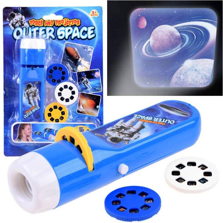 Projektor latarka z KOSMOS 24 slajdy TA0094 TA0094 Poręczny projektor do wyświetlania slajdów o tematyce kosmosu zapewne zyska uznanie w oczach każdego małego astronauty. Poręczny rzutnik dzięki niewielkiemu gabarytowi zawsze można mieć przy sobie np: w pokoju podczas nocnego zasypiania, pod namiotem na wakacjach, u babci, dziadka podczas spędzania weekendu. Dzięki tej zabawce wyobraźnia dziecka będzie mogła tworzyć nieziemskie historie, które będą mogły być opatrzone obrazkami wyświetlanymi na ścianie lub suficie. Cudne, gwiezdne opowieści o drodze mlecznej, czarnej dziurze, gwiezdnej galaktyce, planetach... Na slajdach dziecko może obserwować: astronautów podczas prac przy statkach kosmicznych planety gwiazdy Zestaw zawiera - poręczny projektor - 3 slajdy z obrazkami Wymiar zabawki - 14 x 3 x 3 cm Zasilanie - 2 x 1,5 V AA (brak w zestawie) Latarka bez slajdów może także oświetlać ciemne zakamarki pokoju. Zastosowanie projektora w rękach dziecka może być wszelakie. Zestaw zapakowany jest w efektowne opakowanie, świetnie nada się na prezent. Sklep oferuje szereg edukacyjnych, kreatywnych zabawek dla każdego dziecka. Parametry Wiek: 3 + Płeć: dziewczynka Waga: 0,070kg Gwarancja: Gwarancja 12 miesięcy Certyfikat: CE Wymiar opakowania: 21 x 14 x 3 cm Kolor:: Żółty Długość towaru w centymetrach: 14 Wysokość towaru w centymetrach: 21 Szerokość towaru w centymetrach: 3 Waga gabarytowa w gramach: 147 Baterie: 2 x 1,5 V AA (brak w zestawie)