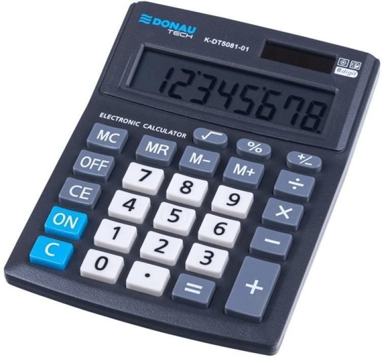 KALKULATOR BIUROWY DONAU TECH OFFICE, 8-CYFR. WYŚWIETLACZ, 137x101x30MM, CZARNY Cechy produktu kalkulator z 8-cyfrowym wyświetlaczem podwójny system zasilania (bateria słoneczna i baterie) stały kąt nachylenia wyświetlacza wymiar: 137x101x30mm funkcja pierwiastka kwadratowego oraz obliczania …