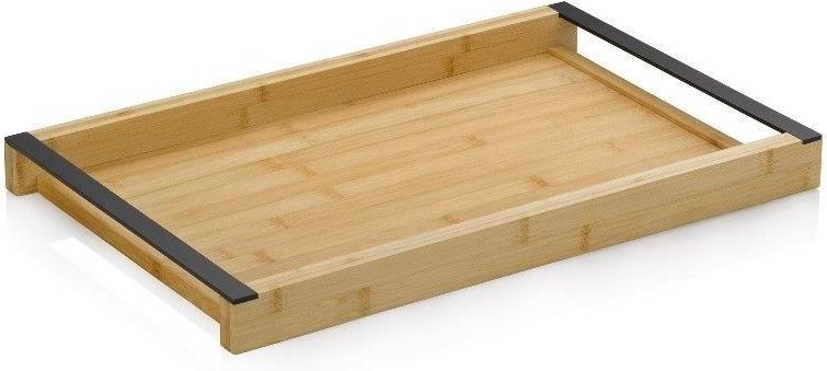 Taca bambusowa KIRIL z czarnymi metalowymi uchwytami po bokach, o wymiarach 54 x 34,5 x 4,5 cm jest idealna do serwowania przekąsek i napojów. Obsługa ze wszystkimi dodatkami. Dobrą kawę, herbatę, domowe ciasto lub małe desery można łatwo przenieść na tę stylową bambusową tacę do serwowania. …