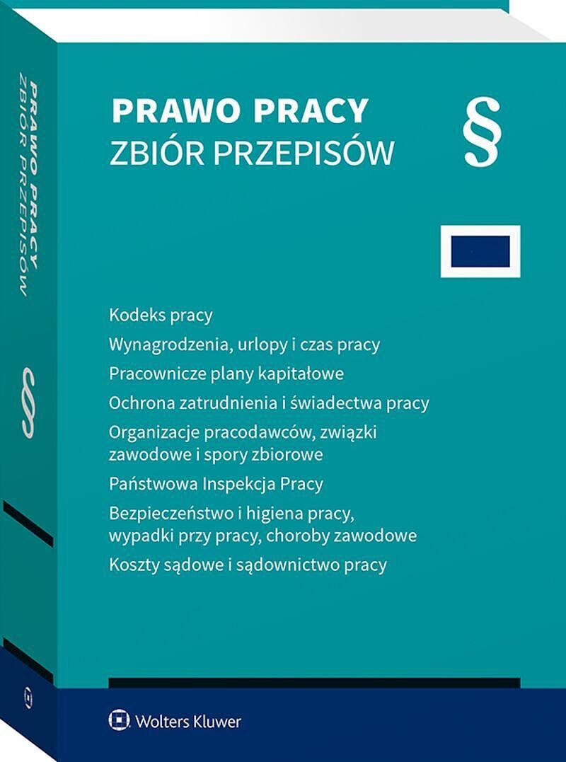Praktyczny zbiór najważniejszych aktów prawnych z zakresu prawa pracy. Zawiera informacje o uwzględnionych zmianach. Zastosowany system oznaczania nowych przepisów znacznie ułatwia codzienną pracę prawnika. Skorowidze do ustaw i tytuliki towarzyszące poszczególnym artykułom, przejrzysty układ, wygodny format, miękka oprawa ze skrzydełkami mogącymi posłużyć za zakładki to dodatkowe atuty książki. UWZGLĘDNIA ZMIANY WCHODZĄCE W ŻYCIE Z DNIEM: KODEKS PRACY 1 lutego 2025 r. – ustawa z 6 grudnia 2024 r. o zmianie ustawy o dniach wolnych od pracy oraz niektórych innych ustaw (Dz.U. poz. 1965) 6 marca 2025 r. -obwieszczenie Marszałka Sejmu Rzeczypospolitej Polskiej z 14 lutego 2025 r. w sprawie ogłoszenia jednolitego tekstu ustawy Kodeks pracy (Dz.U. poz. 277) 19 marca 2025 r. – ustawa z 6 grudnia 2024 r. o zmianie ustawy – Kodeks pracy oraz niektórych innych ustaw (Dz.U. poz. 1871) 24 grudnia 2025 r. – ustawa z 4 czerwca 2025 r. o zmianie ustawy – Kodeks pracy (Dz.U. poz. 807) USTAWA O ŚWIADCZENIACH PIENIĘŻNYCH Z UBEZPIECZENIA SPOŁECZNEGO W RAZIE CHOROBY I MACIERZYŃSTWA: 19 marca 2025 r. - ustawa z 6 grudnia 2024 r. o zmianie ustawy – Kodeks pracy oraz niektórych innych ustaw (Dz.U. poz. 1871) 17 kwietnia 2025 r.- obwieszczenie Marszałka Sejmu Rzeczypospolitej Polskiej z 24 marca 2025 r. w sprawie ogłoszenia jednolitego tekstu ustawy o świadczeniach pieniężnych z ubezpieczenia społecznego w razie choroby i macierzyństwa (Dz.U. poz. 501) 1 stycznia 2026 r. - ustawa z 25 lipca 2025 r. o zmianie ustawy o systemie ubezpieczeń społecznych oraz niektórych innych ustaw (Dz.U. poz. 1083) USTAWA O DODATKOWYM WYNAGRODZENIU ROCZNYM DLA PRACOWNIKÓW JEDNOSTEK SFERY BUDŻETOWEJ 28 kwietnia 2025 r. – obwieszczenie Marszałka Sejmu Rzeczypospolitej Polskiej z 23 kwietnia 2025 r. w sprawie ogłoszenia jednolitego tekstu ustawy o dodatkowym wynagrodzeniu rocznym dla pracowników jednostek sfery budżetowej (Dz.U. poz. 560) USTAWA O DNIACH WOLNYCH OD PRACY 1 lutego 2025 r. – ustawa z 6 grudnia 2024 r. o zmianie ustawy o dniach wolnych od pracy oraz niektórych innych ustaw (Dz.U. poz. 1965) 11 marca 2025 r. – obwieszczenie Marszałka Sejmu Rzeczypospolitej Polskiej z 6 marca 2025 r. w sprawie ogłoszenia jednolitego tekstu ustawy o dniach wolnych od pracy (Dz.U. poz. 296) ROZPORZĄDZENIE W UPRAWNIEŃ PRACOWNIKÓW ORAZ DOKUMENTÓW WNIOSKÓW DOTYCZĄCYCH ZWIĄZANYCH Z RODZICIELSTWEM DOŁĄCZANYCH DO TAKICH WNIOSKÓW 19 marca 2025 r. – rozporządzenie Ministra Rodziny, Pracy i Polityki Społecznej z 1 1 marca 2025 r. w sprawie wniosków dotyczących uprawnień pracowników związanych z rodzicielstwem oraz dokumentów dołączanych do takich wniosków (Dz.U. poz. 322) USTAWA O SZCZEGÓLNYCH ZASADACH ROZWIĄZYWANIA Z PRACOWNIKAMI STOSUNKÓW PRACY Z PRZYCZYN NIEDOTYCZĄCYCH PRACOWNIKÓW: 19 marca 2025 r. - ustawa z 6 grudnia 2024 r. o zmianie ustawy – Kodeks pracy oraz niektórych innych ustaw (Dz.U. poz. 1871) 29 kwietnia 2025 r. - obwieszczenie Marszałka Sejmu Rzeczypospolitej Polskiej z 23 kwietnia 2025 r. w sprawie ogłoszenia jednolitego tekstu ustawy o szczególnych zasadach rozwiązywania z pracownikami stosunków pracy z przyczyn niedotyczących pracowników (Dz.U. poz. 570) USTAWA O OCHRONIE ROSZCZEŃ PRACOWNICZYCH W RAZIE NIEWYPŁACALNOŚCI PRACODAWCY: 19 marca 2025 r. – ustawa z 6 grudnia 2024 r. o zmianie ustawy – Kodeks pracy oraz niektórych innych ustaw (Dz.U. poz. 1871) 3 kwietnia 2025 r. - obwieszczenie Marszałka Sejmu Rzeczypospolitej Polskiej z 24 marca 2025 r. w sprawie ogłoszenia jednolitego tekstu ustawy o ochronie roszczeń pracowniczych w razie niewypłacalności pracodawcy (Dz.U. poz. 433) 1 czerwca 2025 r. – ustawa z 20 marca 2025 r. o rynku pracy i służbach zatrudnienia (Dz.U. poz. 620 ze zm.) USTAWA O REHABILITACJI ZAWODOWEJ I SPOŁECZNEJ ORAZ ZATRUDNIANIU OSÓB NIEPEŁNOSPRAWNYCH: 1 czerwca 2025 r. – ustawa z 20 marca 2025 r. o rynku pracy i służbach zatrudnienia (Dz.U. poz. 620 ze zm.) 8 lipca 2025 r. – obwieszczenie Marszałka Sejmu Rzeczypospolitej Polskiej z 26 czerwca 2025 r. w sprawie ogłoszenia jednolitego tekstu ustawy o rehabilitacji zawodowej i społecznej oraz zatrudnianiu osób niepełnosprawnych (Dz.U. poz. 913) 30 lipca 2025 r. – 30 lipca 2025 r. – ustawa z 26 maja 2023 r. o aplikacji mObywatel (Dz.U. poz. 1234) z dniem wdrożenia rozwiązań technicznych – ustawa z 7 lipca 2023 r. o świadczeniu wspierającym (Dz.U. poz. 1429) ROZPORZĄDZENIE W SPRAWIE DOKUMENTACJI PRACOWNICZEJ 19 marca 2025 r. – rozporządzenie Ministra Rodziny, Pracy i Polityki Społecznej z 14 marca 2025 r. zmieniające rozporządzenie w sprawie dokumentacji pracowniczej (Dz.U. poz. 335) USTAWA O ORGANIZACJACH PRACODAWCÓW 14 stycznia 2025 r. – ustawa z 20 grudnia 2024 r. o Radzie Fiskalnej (Dz.U. z 2025 r. poz. 39 ze zm.) 2 kwietnia 2025 r. – obwieszczenie Marszałka Sejmu Rzeczypospolitej Polskiej z 24 marca 2025 r. w sprawie ogłoszenia jednolitego tekstu ustawy o organizacjach pracodawców (Dz.U. poz. 423) USTAWA O ZWIĄZKACH ZAWODOWYCH 14 stycznia 2025 r. – ustawa z 20 grudnia 2024 r. o Radzie Fiskalnej (Dz.U. z 2025 r. poz. 39 ze zm.) 4 kwietnia 2025 r. – obwieszczenie Marszałka Sejmu Rzeczypospolitej Polskiej z 24 marca 2025 r. w sprawie ogłoszenia jednolitego tekstu ustawy o związkach zawodowych (Dz.U. poz. 440) USTAWA O PAŃSTWOWEJ INSPEKCJI PRACY 15 marca 2025 r. – ustawa z 21 lutego 2025 r. o zmianie ustawy o Planie Strategicznym dla Wspólnej Polityki Rolnej na lata 2023 –2027 oraz niektórych innych ustaw (Dz.U. poz. 321) 9 kwietnia 2025 r. – ustawa z 7 marca 2025 r. o unijnej sieci danych dotyczących poziomu zrównoważenia gospodarstw rolnych (FSDN) (Dz.U. poz. 368) 1 czerwca 2025 r. – ustawa z 20 marca 2025 r. o rynku pracy i służbach zatrudnienia (Dz.U. poz. 620 ze zm.) 1 stycznia 2026 r. – ustawa z 21 maja 2025 r. o zmianie niektórych ustaw w celu deregulacji prawa gospod