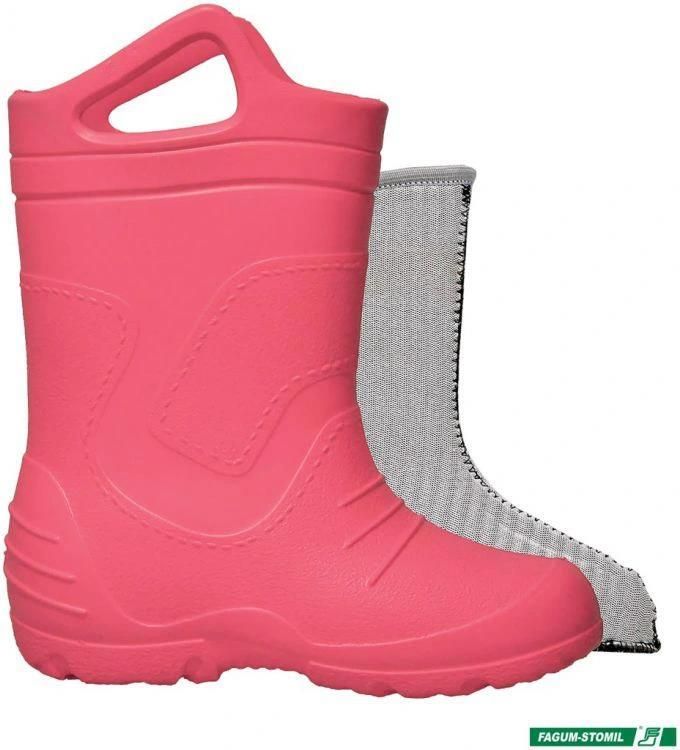 BFKIDS Kalosze dla dzieci. wykonane z tworzywa EVA gwarantującego wysoki komfort użytkowania. Wodoodporne i ciepłe, swoboda użytkowania w każdych warunkach atmosferycznych. W komplecie skarpeta. Antypoślizgowa podeszwa zabezpieczająca przed poślizgiem i przewróceniem na śliskiej powierzchni. Obuwie dostępne dla maluchów i starszaków. Marka: FAGUM-STOMIL Produkt polecany dla branż: Sport, rekreacja oraz pielęgnacja urody