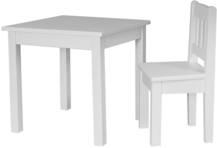 Komplet MINI sosnowy BIAŁY 49x49 Komplet składający się z krzesełka i stolika przygotowany z myślą o dziecku w kolorze lakierowanej sosny. Zestaw zrobiony z litego drewna sosnowego metodą czopowania i klejenia przez co jest bardzo solidny. Do lakierowania naszych wyrobów używamy lakierów posiadających atest Państwowego Zakładu Higieny. Podstawowa wersja kolorystyczna to lakier bezbarwny. Możemy przygotować produkt surowy, gotowy do samodzielnego polakierowania. Istnieje możliwość wybarwienia na inny kolor. Wymiary krzesełka: wysokość - 56,5 cm wysokość do siedziska - 29 cm szerokość siedziska - 30,5 cm głębokość siedziska - 27 cm waga - 2,7 kg produkt wysyłany w całości Wymiary stoliczka: wysokość - 49 cm szerokość - 49 cm długość - 49 cm waga - 6,2 kg Nasze produkty są wykonane z litego drewna o różnych fakturach, kolorach, umiejscowieniach sęków, ale i szczelinach, które są naturalnymi cechami drewna, dodającymi im niepowtarzalny urok. Zalety naszych produktów: -produkt prosto od polskiego producenta, -100% wykonanie z litego drewna, -krzesła wykonane metodą czopowania i klejenia, a nie skręcane, -możliwość zamówienia produktu w stanie surowym, -wykończone ekologiczną farbą, -w mebelkach dziecięcych zaokrąglone kanty i rogi, -krzesła wysyłane w całości, stolik do prostego, samodzielnego montażu, -możliwość wyboru innego koloru.