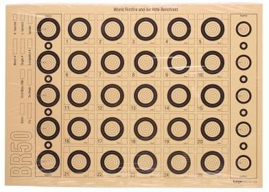 Do treningu w dyscyplinie Benchrest BR50. Produkt zgodny z oficjalny wizualem, pozwala na symulację kompletnej serii match. Wzór zgodny z oficjalną dyscypliną (tarcza próbna + match). Sprzedawane w zestawach po 25 sztuk.