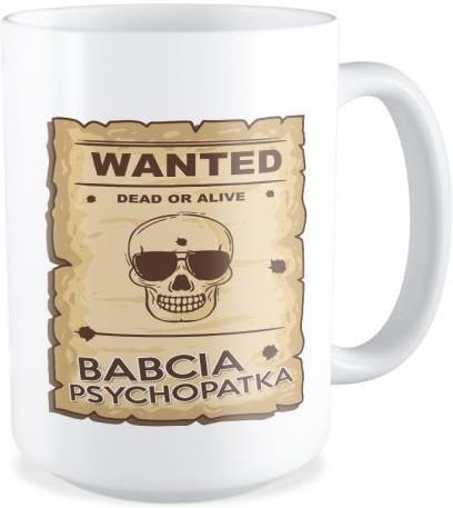 Kubek wanted dead or alive babcia psychopatka Uwaga, GRATIS! Każdy kubek umieszczany jest w ozdobnym kartoniku! Materiał: CeramikaPowłoka: wielowarstwowa, utwardzanaPojemność: 450 mlWysokość: 116 mmNadruk: Pełnokolorowy, niewyczuwalny w dotykuGrafika: max. 200 - 90 mmNadruk odporny na mycie w zmywarce PRODUCENT: fajneKUBKIPRODUKT POLSKI