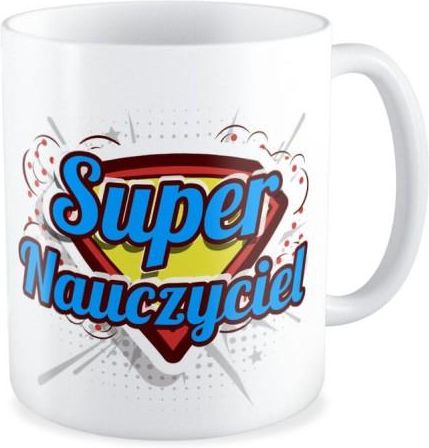 Chcesz podziękować swojemu nauczycielowi za trud i cierpliwość jaką wkłada w swoją pracę? Świetnie sprawdzi się do tego kubek z oryginalnym tekstem i grafiką. Z pewnością wywoła uśmiech na twarzy wielu nauczycieli np. podczas zakończenia roku szkolnego lub z okazji Dnia Nauczyciela. BIAŁY:Nadruk odporny na mycie w zmywarce CZERWONY:Wykończenie kubka: Czerwone elementy kubka to jego uchwyt i środek. Pozostałe elementy, w tym miejsce w którym nakładana jest grafika, są w kolorze białym.Powłoka: Wielowarstwowa, utwardza De LuxNadruk odporny na mycie w zmywarceCZARNY:Wykończenie kubka: Czarne elementy kubka to jego uchwyt i środek. Pozostałe elementy, w tym miejsce w którym nakładana jest grafika, są w kolorze białym.Powłoka: Wielowarstwowa, utwardza De LuxNadruk odporny na mycie w zmywarce NIEBIESKI: Wykończenie kubka: Niebieskie elementy kubka to jego uchwyt i środek. Pozostałe elementy, w tym miejsce w którym nakładana jest grafika, są w kolorze białym.Powłoka: Wielowarstwowa, utwardza De LuxNadruk odporny na mycie w zmywarce MAGICZNY:Magia kubka: Po zalaniu gorącą cieczą na kubku pojawia się stopniowo wybrana grafika, która w normalny jego stanie zakryta jest kolorem czarnym. Po wystudzeniu zalanej cieczy kubek ponownie staje się czarny. Grafika przykryta jest w około 90%, to jeden z lepszych parametrów dostępnych na rynku.Nadruk nie nadaje się do mycia w zmywarceCECHY WSPÓLNE:Materiał: CeramikaPowłoka: Wielowarstwowa, utwardza De LuxPojemność: 330 ml, 450ml (DUŻY)Wysokość: 93 mm, 116mm (DUŻY)Nadruk: Pełnokolorowy, niewyczuwalny w dotykuGrafika: 19-20 cm x 9-9,3 cm; 20 cm x 9 cm