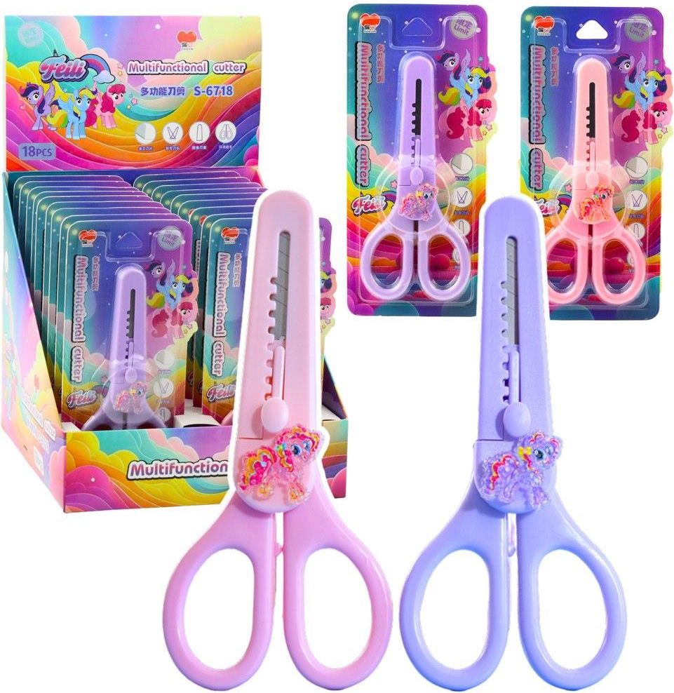 NOŻYCZKI Z OSŁONKĄ I OZDOBNYM KONIKIEM Nożyczki z osłonką i dekoracyjnym motywem konika to idealne narzędzie dla najmłodszych użytkowników. Ich bajkowy wygląd i pastelowa kolorystyka zachęcają do kreatywnej zabawy, a przy tym dbają o bezpieczeństwo i wygodę dziecka. Zintegrowana ochronna osłonka na ostrze zapobiega przypadkowym skaleczeniom i umożliwia bezpieczne przechowywanie w piórniku, plecaku lub szufladzie. Nożyczki posiadają ergonomiczne uchwyty dopasowane do małych dłoni, a ozdobny konik z brokatowymi elementami dodaje im wyjątkowego charakteru. Sprawdzą się zarówno w domu, jak i w szkole, podczas prac plastycznych, wycinanek i kreatywnych projektów. To nie tylko praktyczne narzędzie, ale również atrakcyjny gadżet, który sprawi dzieciom wiele radości. W opakowaniu zbiorczym znajduje się 18szt. Sprzedawane osobno. Kolor wybierany losowo. SPECYFIKACJA: Wymiary nożyczek: 14 cm Wymiary opakowania: 18 x 8,5 x 3 cm Wymiary opakowania zbiorczego: 22,5 x 19 x 18,5cm Elementy dodatkowe: osłonka na ostrze, dekoracyjny konik ZAWARTOŚĆ ZESTAWU: 1x nożyczki z osłonką 1x opakowanie blistrowe Informacje o produkcie Certyfikat CE Ostrzeżenie! Nieodpowiednie dla dzieci w wieku poniżej 3 lat Płeć Dziewczynki Wiek +3 Długość towaru w centymetrach 9 Wysokość towaru w centymetrach 18 Szerokość towaru w centymetrach 3 Waga gabarytowa w gramach 81