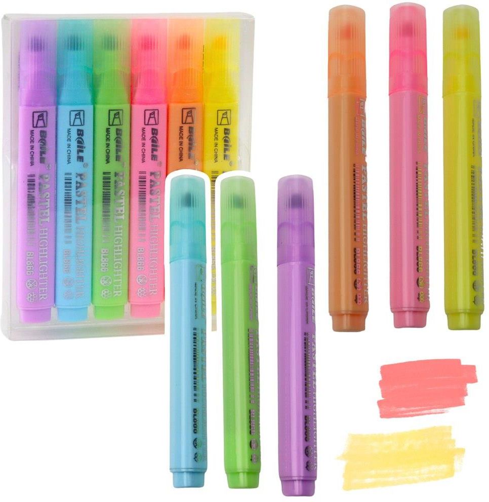 ZESTAW ZAKREŚLACZY KOLOROWE 6SZT Zestaw zakreślaczy pastelowych to doskonałe narzędzie dla każdego, kto ceni sobie estetyczne i wyraziste podkreślenie treści. Idealnie nadają się do użytku zarówno w szkole, biurze, jak i w domu, pomagając w organizacji notatek, dokumentów oraz kreatywnych projektów. Zakreślacze wyróżniają się subtelnymi, pastelowymi kolorami, które nadają wyjątkowy charakter każdemu tekstowi. Dzięki miękkiej, ściętej końcówce, umożliwiają tworzenie zarówno cienkich, jak i szerokich linii, co sprawia, że świetnie sprawdzają się w różnorodnych zastosowaniach. Każdy zakreślacz został wykonany z wysokiej jakości materiałów, które zapewniają gładkie i równomierne rozprowadzanie tuszu bez smug i zacieków. Tusz jest szybkoschnący, co zapobiega rozmazywaniu się tekstu, nawet przy częstym użytkowaniu. Trwała końcówka gwarantuje długą żywotność, a estetyczna przezroczysta nakładka chroni przed wysychaniem. Opakowanie jest kompaktowe i łatwe do przenoszenia, co czyni je idealnym rozwiązaniem zarówno na biurko, jak i do plecaka. Dzięki wyraźnym kolorom i ergonomicznemu kształtowi, zakreślacze zapewniają komfortowe użytkowanie oraz estetyczny wygląd każdej strony notatek czy dokumentów. SPECYFIKACJA Ilość zakreślaczy: 6 sztuk Kolory: Pastelowe (fioletowy, niebieski, zielony, różowy, pomarańczowy, żółty) Rodzaj końcówki: Ścięta Wymiary opakowania: 13,5 x 10,5 x 1,5 cm Tusz: Szybkoschnący, nietoksyczny Zastosowanie: Szkoła, biuro, dom Materiał obudowy: Tworzywo sztuczne ZAWARTOŚĆ ZESTAWU 6 pastelowych zakreślaczy Praktyczne, przezroczyste opakowanie Informacje o produkcie Certyfikat CE Ostrzeżenie! Nieodpowiednie dla dzieci w wieku poniżej 3 lat Płeć Uniseks Wiek +3 Długość towaru w centymetrach 11 Wysokość towaru w centymetrach 14 Szerokość towaru w centymetrach 2 Waga gabarytowa w gramach 51.33