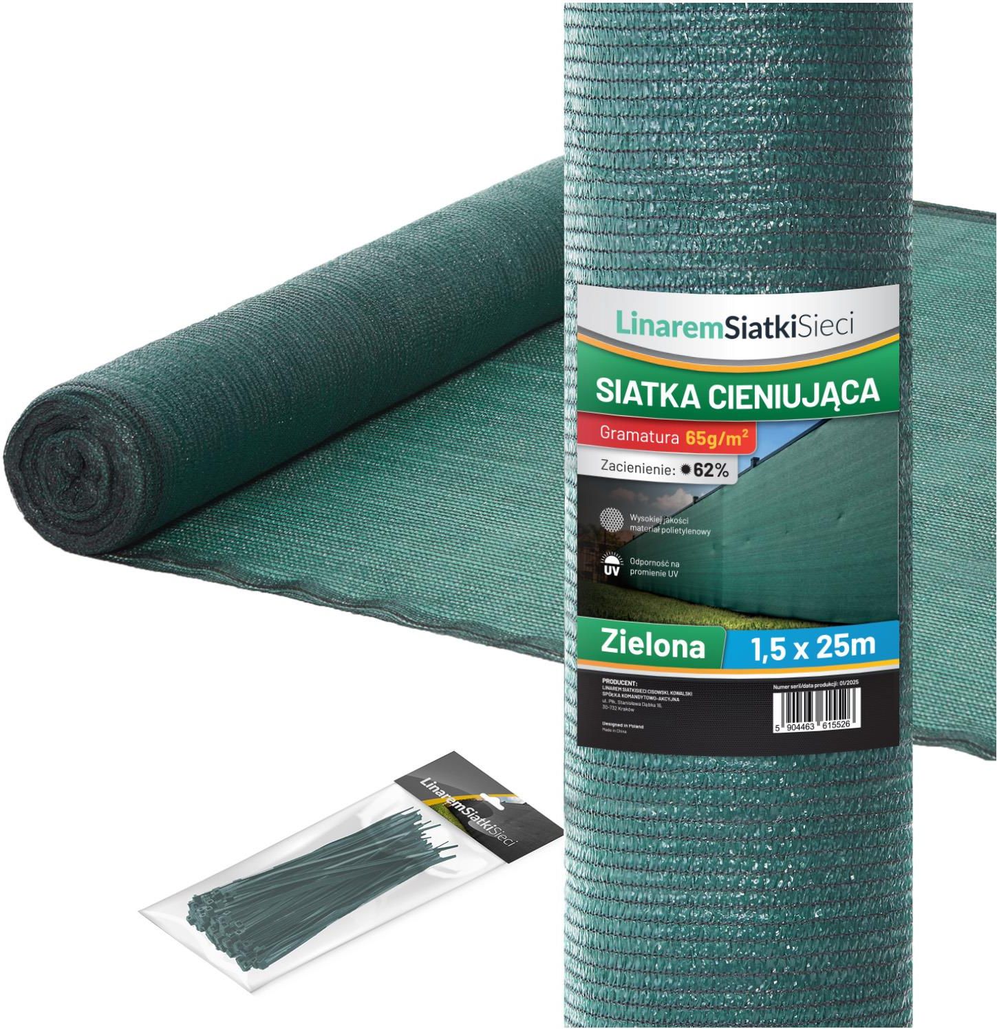 Linarem Siatkisieci Siatka Cieniująca 1,5X25M Osłona Maskująca Na Ogrodzenie Płot 62% Zielona Kraków