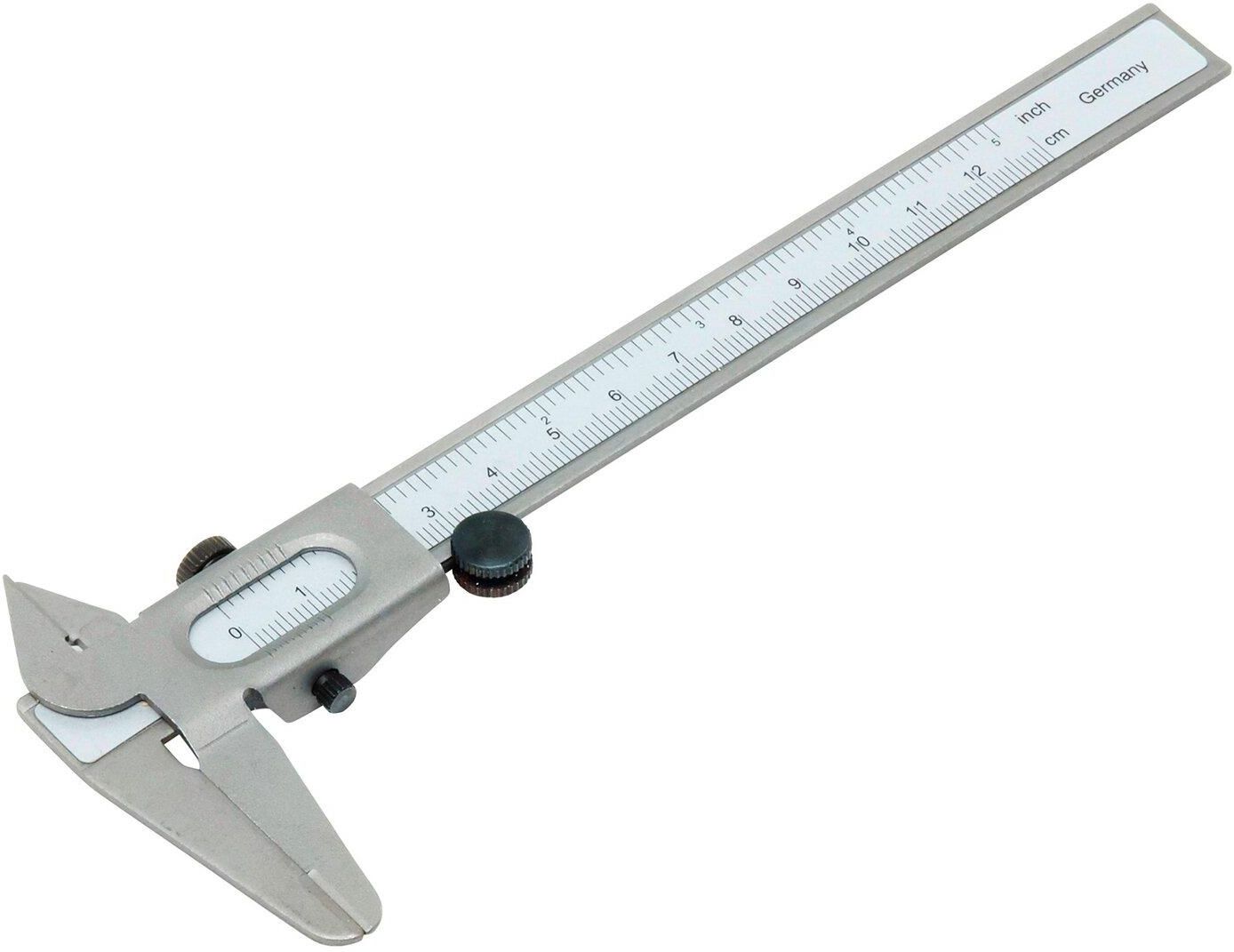 Suwmiarka LUX-TOOLS o długości 120 mm wyposażona jest w pokrętło do dokładnego ustawiania i nadrukowaną podziałkę, które ułatwiają precyzyjne wymiarowanie.