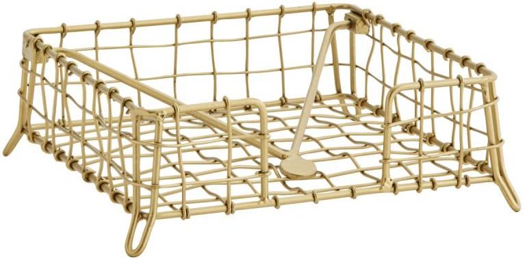 Serwetnik złoty metalowy na stół wykonany z ręcznie plecionego metalu w kolorze złotym. Wymiary: 19 x 19 x h7 cm