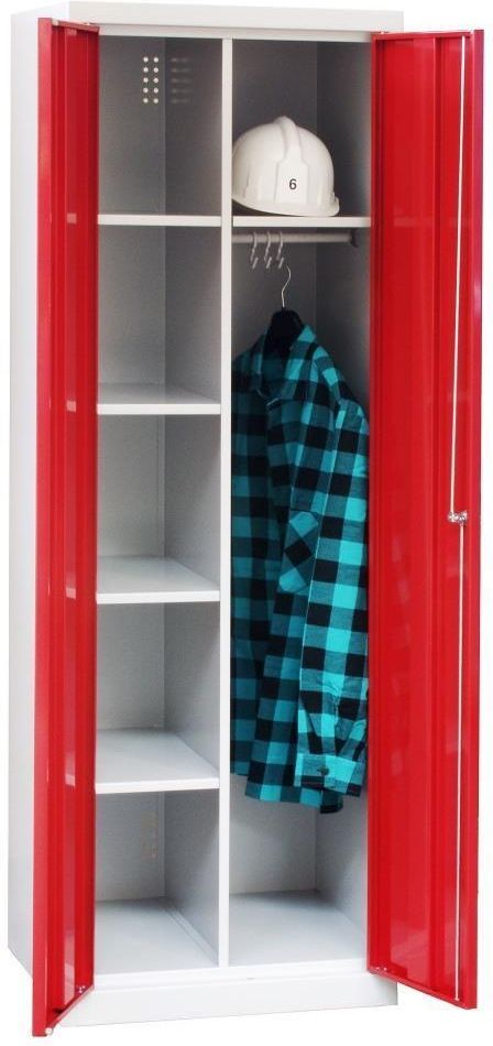 Szafa gospodarcza Smd 61, szafy, Malow Wymiary szafy: 1800x600x500 (wys. x szer. x gł.). Szafka socjalna ?gospodarcza, wyposażona wewnątrz lewego segmentu ? w 4 półki, wewnątrz prawego segmentu ? w górną półkę, poniżej w drążek z 3 przesuwanymi wieszakami na ubranie. Szafka zamykana zamkiem cylindrycznymi z ryglowaniem w 2 punktach. W sklepie znajdują się Top Meble. Aby uzyskać dostęp do całego asortymentu zapraszamy do pobrania katalogów. Proponujemy również: ławki metalowe, szafy strażackie, szafki warsztatowe, metalowe szafy kartotekowe, kozetki medyczne.