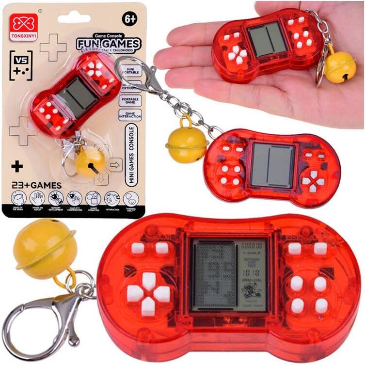 Mały brelok w kształcie konsoli to świetny gadżet, który łączy zabawę z nutką nostalgii! Dostępny w trzech żywych kolorach: - niebieskim, - zielonym, - czerwonym. Każdy brelok dodatkowo ozdobiony jest dzwoneczkiem, który idealnie pasuje do koloru konsoli, dodając uroku i przyciągając uwagę. W środku kryją się retro gry, które kiedyś uwielbiali nasi rodzice, teraz mogą bawić najmłodszych. Gry są proste, ale zapewniają mnóstwo frajdy, zwłaszcza dla fanów klasycznych tytułów. Konsolka jest doskonale dopasowana do małych rączek, a jej kompaktowy rozmiar sprawia, że bez problemu mieści się w dłoni, co czyni ją idealną do zabawy w podróży lub podczas przerwy w szkole. Wymiary: - gra: 6,5 cm x 3,5 cm x 1,5 cm - dł. łańcuszka: 6 cm Zasilanie: - 2 x AG13 (w zestawie) UWAGA: Przed złożeniem zamówienia proszę wybrać kolor. W przypadku braku koloru produkt wysyłamy losowo. Cena dotyczy jednej sztuki. Całość wykonana jest z wytrzymałego plastiku z metalowym łańcuszkiem, który pozwala łatwo przypiąć brelok do plecaka, kluczy czy piórnika. Gumowe klawisze sprawiają, że sterowanie grami jest przyjemne i intuicyjne, nawet dla najmłodszych. To zabawka, która łączy klasykę z nowoczesnością, idealna zarówno dla dzieci, jak i dorosłych, którzy chcą wrócić na chwilę do czasów dzieciństwa. Sklep Jokomisiada oferuje szereg interesujących gadżetów, które zachwycą nie tylko tych najmłodszych, ale i również ich rodziców, zapraszamy!