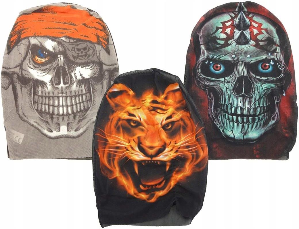 Budząca grozę maska z elastycznego materiału, idealna na szybkie przebranie halloweenowe, sprawdzi się też podczas karnawału. A i skok na bank też może się udać :-) Wizerunek nadrukowanego upiora typu wampir czy zombie to kwintesencja samego zła. Materiał ala ponczocha umożliwia normalne widzenie, wystarczy załozyć aby już siać przerażenie i strach. doklejka TOPY halloween,GoDan,Halloween,kościotrup / szkielet,na całą głowę,tkanina / materiał,wielokolorowy
