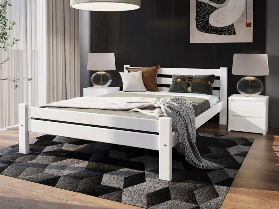 Łóżko sosnowe JAN 120X200 BIAŁE Łóżko drewniane JAN w całości wykonane zostało z naturalnego drewna sosnowego. Przy produkcji mebli na pierwszym miejscu stawiamy na wytrzymałość dlatego materiał jaki wykorzystujemy jest starannie selekcjonowany, tak aby konstrukcja była bezpieczna w użytkowaniu, a jednocześnie służyła przez wiele lat. Stabilność całej konstrukcji zapewnia zastosowanie materiału o grubości 2,5 cm. Dodatkowo do produkcji wykorzystane zostały masywne nogi które podkreślają solidność całości jako formy. Wymiary łóżka Szerokość zewnętrzna: 132 cm Długość zewnętrzna: 210 cm Szerokość wewnętrzna: 120 cm Długość wewnętrzna: 200 cm Prześwit pod łóżkiem:21,5 cm Szerokość listew: 9,5 cm Grubość listew: 2,5 cm Wysokość łóżka od strony zagłówka: 72 cm Wysokość łóżka od strony nóg: 46 cm Grubość nóg: 4,5 cm x 9,5 cm Grubość materaca ze zdjęć wynosi 10 cm Cechy łóżka JAN -Wykonane z naturalnego drewna sosnowego. -Wykorzystywanie farb i lakierów, które są bezpieczne dla zdrowia oraz spełniają normy bezpieczeństwa. -Ręczna produkcja w zakładzie stolarskim. -Funkcjonalność oraz solidność całej konstrukcji zapewnia zastosowanie wyselekcjonowanego materiału. -Prosty, intuicyjny montaż przez zastosowanie połączenia: śruby + drewniane kołki. -Wszystkie krawędzie fazowane co daje kilka korzyści takich jak: bezpieczeństwo, estetyka, trwałość i funkcjonalność. Stelaż w aukcji przeznaczony jest pod materac do łóżka o wymiarach 120x200.Składa się z 12 listew o wymiarach: 6cm x 2cm W skład łóżka wchodzą -rama łóżka JAN 120x200 -stelaż rolowany do łóżka 120x200 -zestaw montażowy z kluczykiem -instrukcja montażu