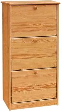Drewniana Szafka na buty Sosnowa III-drzwi C86 - 58x28x115 cm Drewniana szafka na buty z naturalnego drewna sosnowego to idealny wybór do każdego przedpokoju. Wykonana z solidnej sosny, zachwyca trwałością, naturalnym wyglądem oraz ekologicznym wykończeniem. Jej kompaktowe wymiary - 58 cm szerokości, 28 cm głębokości i 115 cm wysokości - sprawiają, że doskonale sprawdzi się nawet w niewielkich pomieszczeniach, oferując jednocześnie dużo miejsca do przechowywania. Szafka została zaprojektowana z myślą o funkcjonalności - wielopoziomowe półki pomieszczą zarówno buty codzienne, jak i sezonowe, utrzymując porządek i estetykę wnętrza. Naturalne drewno sosnowe wprowadza do pomieszczenia przytulny klimat. Cechy produktu: -Wykonana w 100% z litego drewna sosnowego -Wymiary: 60x28x115 cm -Naturalna, trwała i ekologiczna -Pojemne półki na wiele par obuwia -Idealna do przedpokoju, garderoby czy holu