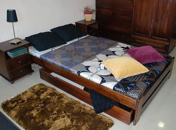 Zestaw Figaro 120x200 + materac kieszeniowy Orzech Zestaw zawiera łóżko sosnowe Figaro 120x200 w kolorze orzech i materac kieszeniowy. ŁÓŻKO: -grubość deski : 2,6 cm -wymiar wew : 120x200 cm -wymiar zew : 127x205 cm -wysokość czółka przy nogach : 34 cm -wysokość czółka przy głowie : 50 cm -wysokość od podłogi do spodu łóżka : 20 cm . MATERAC: -budowa materac średnio twardy, dwustronny. -wkład - sprężyna kieszeniowa. -wysokość: ok 16 cm -pokrowiec niepikowany, zdejmowany do prania, zamek wszyty z trzech stron, co ułatwia jego ściąganie i pranie, -dwustronny - możliwość użytkowania materaca z dwóch stron Zestaw nie zawiera dodatków typu : szuflada, szafki nocne i reszta produktów z aranżacji.