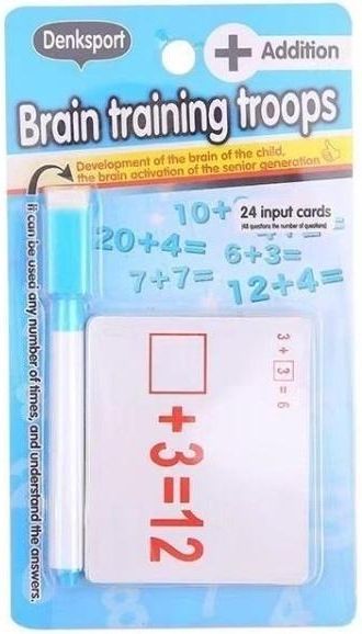 Wprowadź swoje dziecko w świat matematyki z zestawem "Denksport Brain Training Troops - Dodawanie"! Ten innowacyjny produkt został stworzony, aby wspierać rozwój mózgu dziecka i aktywizować umysł osób starszych. W opakowaniu znajdziesz 24 dwustronne karty wejściowe, co daje aż 48 zadań do rozwiązania, obejmujących różnorodne przykłady dodawania. Dołączony zmazywalny flamaster sprawia, że karty są wielokrotnego użytku - możesz pisać na nich i zmazywać dowolną liczbę razy, co czyni naukę prostą i ekologiczną. Karty są wytrzymałe i łatwe do przechowywania. Dzięki temu zestawowi nauka dodawania staje się angażującą zabawą, która pomaga dzieciom w opanowaniu podstawowych operacji matematycznych i budowaniu pewności siebie w liczeniu. To doskonały wybór dla rodziców i opiekunów, którzy szukają skutecznego narzędzia edukacyjnego.