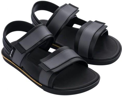 Męskie sandały firmy RIDER model: SPIN PAPETE kod produktu: 11765 kolor: black/dark grey 21122 Męskie sandały Rider zaprojektowane dla tych, którzy lubią sport i aktywny wypoczynek. Materiał wierzchni to elastyczne wysokogatunkowe tworzywo; spód wykonany jest z wysokogatunkowego tworzywa TR - gumy antypoślizgowej. Materiał podeszwy (Eco Dry Foam) uzupełniono specjalną pianką Flexpand, uformowaną na kształt krzywizny stopy. Sandały zapinane są na rzepy, pozwala to na idealne dopasowanie obuwia do stopy. Zastosowane materiały zapewniają wysoki komfort ich użytkowania. Sandały idealne na plażę, w okresie wakacyjnym lub do codziennego użytkowania. Buty RIDER produkowane są z opatentowanego plastiku Meflex, który jest miękki, przyjazny dla skóry i hipoalergiczny. RIDER IPANEMA to jeden z największych producentów klapek i sandałów z tradycja sięgającą lat 60' XX w. Produkty IPANEMA pochodzą z Brazylii; cechuje je najwyższa jakość, oryginalna stylistyka i doskonałe wykończenie. SZCZEGÓŁY PRODUKTU: cholewka: wysokogatunkowe tworzywo; syntetyczny materiał podeszwa: wysokogatunkowe tworzywo miękka wkładka z pianki dla lepszej amortyzacji zapięcie na rzep ułatwia zakładanie i zdejmowanie obuwia