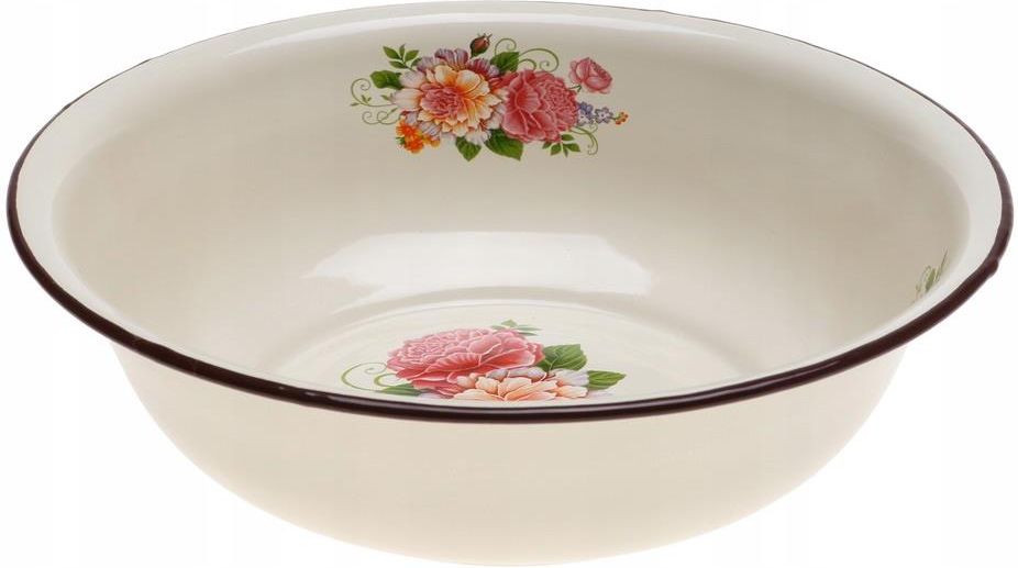 Miska emaliowana Cechy produktu: Miska stalowa pokryta emalią Kolor: beżowy ze wzorem Średnica: 30 cm Wysokość: 9 cm UWAGA! Miski występują w różnych wzorach, wysyłamy losowo