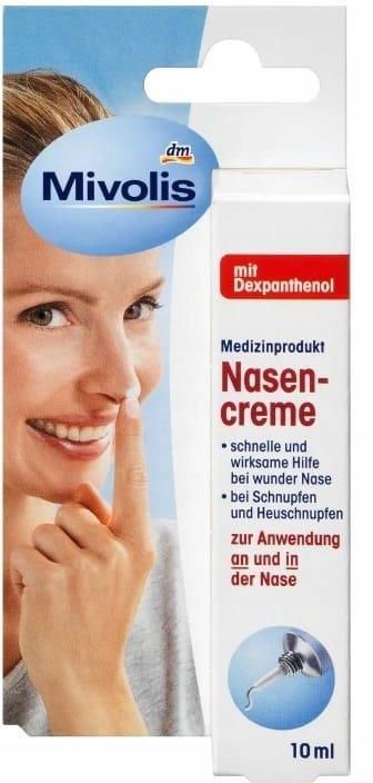 Mivolis Krem do nosa 10 ml Częste wydmuchiwanie nosa w sezonie alergii i przeziębień oraz suche powietrze mogą powodować podrażnienia, pękanie i bolesność wrażliwej skóry wewnątrz i wokół nosa. Krem do nosa marki Mivoli pokrywa błonę śluzową nosa trwałą warstwą ochronną, która zapobiega wysychaniu nosa, a dzięki połączeniu aktywnych składników krem stanowi szybką i skuteczną pomoc na obolały nos oraz pomaga przy zwykłym katarze i katarze siennym. - Olej sezamowy stanowi osłonę dla błony śluzowej nosa i delikatnie rozpuszcza skórki i strupy. - Połączenie gliceryny, atlantyckiej soli morskiej i dekspantenolu skutecznie nawilża i pielęgnuje błonę śluzową. - Lanolina zmiękcza szorstkie miejsca oraz wspomaga regenerację podrażnionej i obolałej skóry. szybka i skuteczna pomoc na bolący nos do stosowania przy zwykłym katarze i katarze siennym do użycia wewnątrz i na zewnątrz nosa zawiera dekspantenol Składniki: lanolina, olej sezamowy, olejek pomarańczowy, gliceryna, dekspantenol, cynk PCA, sól morska z wód Oceanu Atlantyckiego, naturalny aromat tymianku