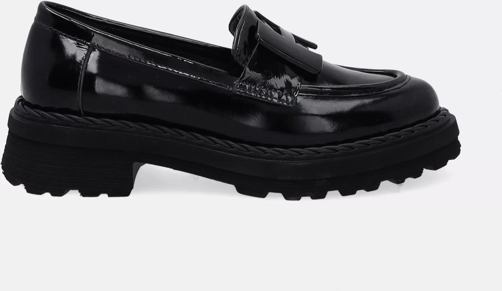 Mokasyny damskie VENEZIA 0010556R BLACK Lakierowane mokasyny to niezastąpiony element jesiennej garderoby. Klasyczna cholewka z migdałowym noskiem została uzupełniona subtelną ozdobą w czarnym kolorze. Mokasyny doskonale pasują do spodni, spódnic czy sukienek. dekoracyjny otok wygodny obcas nie …