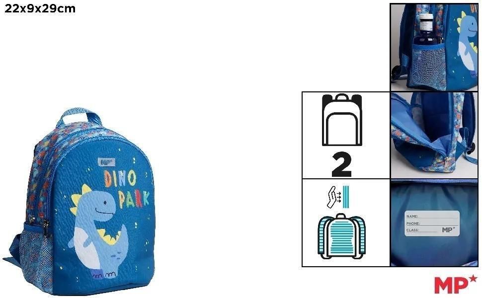 Plecak dwukomorowy Dino Park granatowy 22x9x29cm EAN: 8435721032474 Opakowanie: folia Producent: MP Main Paper Wymiary: 315x310 mm