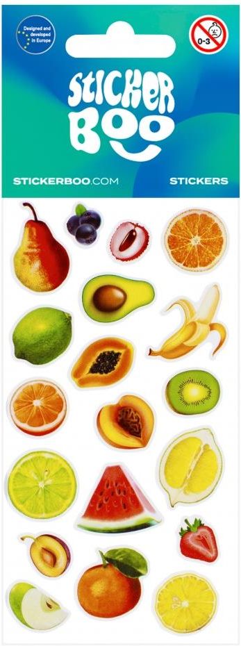 Mix wzorw. Towar wysyamy losowo. Cena dotyczy jednej sztuki. Naklejki STICKER BOO z grafik z owocami z pewnoci przypadn do gustu dzieciakom, idealne do zdobienia rysunkw, wszelkiego rodzaju prac plastycznych oraz kolekcjonowania.