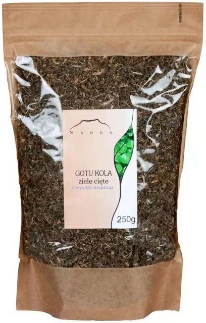 Składniki: Liść Gotu kola - Centella asiatica - 250g mielony Klasyfikacja: Zioła Gotu kola (Centella asiatica - azjatycka pępowina) stosowana jest w indyjskiej ajurwedzie od tysięcy lat jako środek poprawiający sprawność umysłową, a także korzystnie wpływa na krążenie, zwłaszcza niewydolność żylną, a także problemy skórne i trudne do leczenia rany. Gotu Kola uważana jest za roślinę o właściwościach rewitalizujących i spowalniających procesy starzenia się organizmu. Zielarze polecają wywar z tej rośliny w celu ogólnego wzmocnienia i przywrócenia dobrego samopoczucia oraz energii. Właściwości Gotu kola Gotu kola prezentuje niezwykle szeroki wachlarz działań prozdrowotnych. Nie tylko wspomaga prawidłowe funkcjonowanie układu nerwowego i przywraca mu równowagę, ale także pozytywnie wpływa na pamięć i zdolność koncentracji. Zaobserwowano zwiększoną aktywność układu cholinergicznego związaną z procesem uczenia się i zapamiętywania. Badanie wykazało również, że azjatycka pępowina wpływa na wzrost czynników wzrostu nerwów, takich jak BDN (neurotroficzny czynnik pochodzenia mózgowego), który jest odpowiedzialny za wzrost i ochronę komórek nerwowych. Gotu kola jest skuteczna w przyspieszaniu naturalnych procesów regeneracyjnych, które czasami mogą być stosowane w leczeniu udarów lub urazów mózgu. Odwary Goto kola łagodzą negatywne skutki stresu i wspierają organizm w codziennych wyzwaniach. Regularne stosowanie korzystnie wpływa na układ krwionośny – zarówno krwionośny, jak i mózgowy, co umożliwia skuteczne zaopatrywanie komórek w niezbędne do przeżycia składniki odżywcze i tlen. Ekstrakty z wody i mieszanki gotu koli, które stosuje się zewnętrznie, doskonale nadają się do pielęgnacji skóry, skutecznie łagodzą podrażnienia, likwidują zaczerwienienia i przyspieszają procesy regeneracji. Składniki aktywne zawarte w gotu kola stymulują komórki tkanki łącznej do syntezy kolagenu i elastyny, a także powodują wzrost kwasu hialuronowego, co czyni ją bardzo cenną rośliną w kosmetologii. W efekcie skóra wygląda zdrowiej i młodziej, staje się jędrniejsza, bez wyprysków i zmarszczek. Ponadto wykazano, że ekstrakty wpływają na strukturę blizn, dzięki czemu można je wygładzić i zmniejszyć ich przebarwienia. Jednak najskuteczniejsza cola działa w odniesieniu do świeżo powstałych blizn. Jest szeroko stosowany w produktach do pielęgnacji skóry, które redukują cellulit, wygładzają zmarszczki, a nawet wspomagają leczenie odleżyn i oparzeń. Gotu kola w proszku Gotu kola jest dostępna w postaci ziół do wywaru oraz w postaci proszku. Właściwości prozdrowotne Ma korzystny wpływ na funkcjonowanie układu nerwowego Wspomaga zdolność utrzymania uwagi, ułatwia zapamiętywanie, ostrość myśli Poprawia krążenie krwi i mikrokrążenie w naczyniach włosowatych (nie wpływa na ciśnienie krwi) ZASTOSOWANIE Wewnętrznie w postaci wywarów, ekstraktów lub proszku Gotu kola to substancja roślinna, która poprawia krążenie obwodowe i mózgowe. Poprawia zdolność koncentracji, zwiększa wchłanianie umysłu, jednocześnie uspokajając i zapobiegając odczuwaniu stresu. Ponadto zmniejsza napięcie i rozproszenie uwagi, co może powodować zwiększoną nerwowość. Jest to ciekawa roślina dla studentów. Zewnętrzna - do mycia lub okładów Gotu kola może być stosowana jako suplement na podrażnioną lub zranioną skórę, oparzenia lub do mycia zmian skórnych takich jak trądzik, opryszczka czy pokrzywka. Przyspiesza proces naturalnej regeneracji oraz stymuluje syntezę kolagenu i elastyny w skórze. Gotu kola jest częstym składnikiem preparatów przeznaczonych do łagodzenia żylaków i hemoroidów, które zmniejszają obrzęki nóg, czy po prostu produktów kosmetycznych – zwłaszcza tych, które działają przeciwzmarszczkowo lub są przeznaczone do cery naczynkowej. Po dodaniu do kremów likwiduje zaczerwienienia i cienie pod oczami. DAWKOWANIE GOTU KOLA I SPOSÓB UŻYCIA Gotu kola (zioła cięte): wywar 1-2 łyżeczki zioła zalać szklanką wrzącej wody, parować pod przykryciem przez 20 minut. Pij szklankę 1-2 razy dziennie, najlepiej rano i w południe. Nie zaleca się stosowania zioła wieczorem, ponieważ może to powodować trudności z zasypianiem. Aby uzyskać pełny efekt, zaleca się regularne stosowanie gotu kola przez co najmniej jeden miesiąc. Po trzech miesiącach powinna nastąpić 6-tygodniowa przerwa w stosowaniu. Gotu kola w proszku: Weź pół łyżeczki proszku dziennie, najlepiej rano. SKŁADNIKI Opakowanie zawiera suszone ziele Gotu kola (Centella asiatica) zebrane z naturalnych miejsc u podnóża Himalajów. Gotu kola zawiera triterpeny: azjatykozyd (około 0,72-0,98%), jego postać glukozydowa - Asiaticoside (0,3%), Kwas madekasowy (0,72-0,95%), madekassikozyd 1,7%, kwaranoozydy; centellosaponina, kwas ursolowy, kwas rozmarynowy, szereg flawonoidów. PRZECIWWSKAZANIA I INTERAKCJE Gotu kola jest bezpiecznym środkiem, nie są znane żadne skutki uboczne w zalecanych dawkach. INNE NAZWY Hydrocotyl asiatica, Centella asiatica Nazwa zwyczajowa: Gotu-kola, Brahmi (częściej określana jako Bacopa monnieri), Fo-ti-tieng