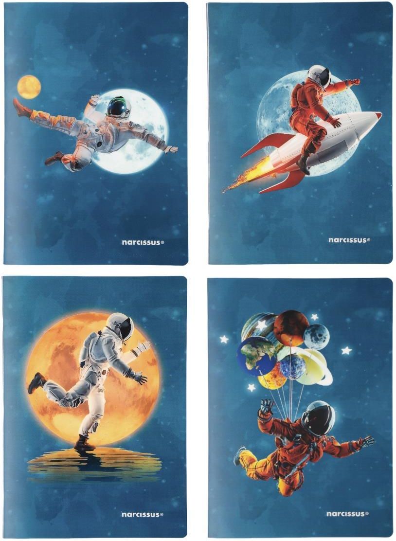 NARCISSUS zeszyt COSMO A4 w kratkę w okładce z polipropylenu 60 kartek COSMO to seria zeszytów szkolnych zaprojektowanych z myślą o chłopcach, ale równie chętnie jest wybierana przez dziewczynki. Podoba się zarówno młodszym dzieciom, jak i nastolatkom. Przyciągające wzrok grafiki to interesujące połączenie tematyki podróży kosmicznych z dynamiką sportową. Kluczowym motywem okładek jest postać kosmonauty na tle księżyca, wkomponowana w ciemnoniebieskie tło. Lekko prześwitująca okładka z polipropylenu (PP) charakteryzuje się dużą elastycznością i odpornością na zabrudzenia. Jest praktyczna, trwała i sprawia, że zeszyt nie wymaga dodatkowej obwoluty. Specyfikacja: •format A4 •zadruk w kratkę z marginesami •60 kartek •gramatura 75 g/m2 •okładka z polipropylenu (PP) Cena dotyczy 4 sztuk zeszytów - 4 różne okładki jak na głównej grafice.