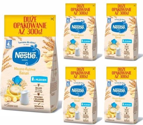 Nestle Kaszka mleczno-ryżowa Banan po 4 miesiącu 5x300g Kraków