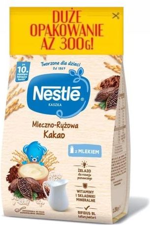 NESTLE Kaszka mleczno-ryżowa Kakao po 10 miesiącu 300g Ze względu na zmianę opakowań przez producenta NESTLE gramatura kaszek wynosi 300g. Kaszka mleczno-ryżowa Nestlé to pyszny pokarm o smaku kakao. Jest to środek spożywczy specjalnego przeznaczenia żywieniowego. Kaszka to doskonały sposób na …