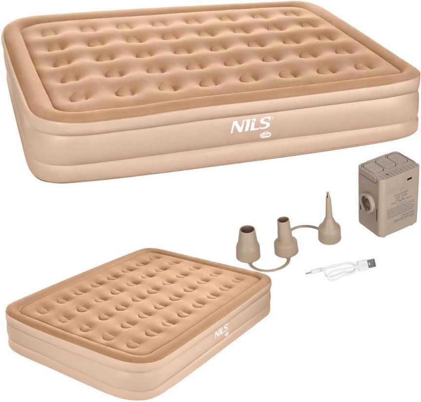Nils Camp Materac Kempingowy Do Spania 2 Os Z Wbudowaną Pompką Elektryczną 200 × 145 35Cm Beżowy Kraków