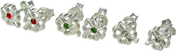 NorbiSrebro Piękne Srebrne Kolczyki Czterolistne Koniczynki,Koniczynka z Cyrkoniami Kraków