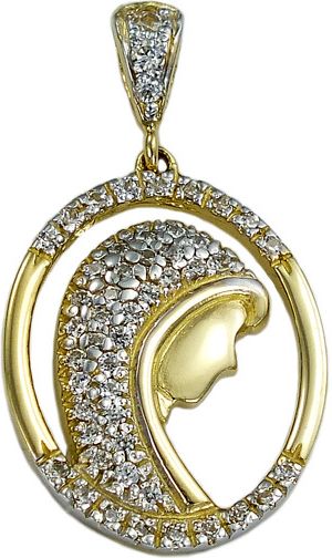 Piękny Złoty Wisiorek Matka Boska z Cyrkoniami !!! Wyrób Naprawdę Efektowny !!! Próba 585 Waga - Wisiorek ~ 2,3 g. Długość - Wisiorek 2,9 cm. z zawieszką Szerokość - Wisiorek 1,5 cm.